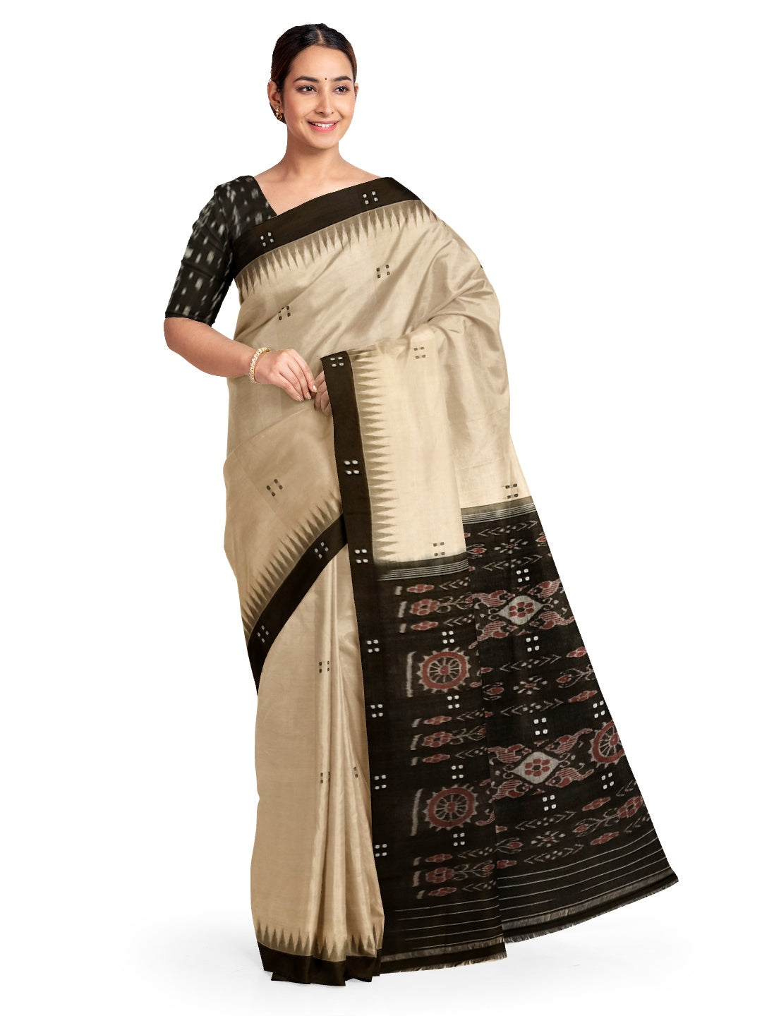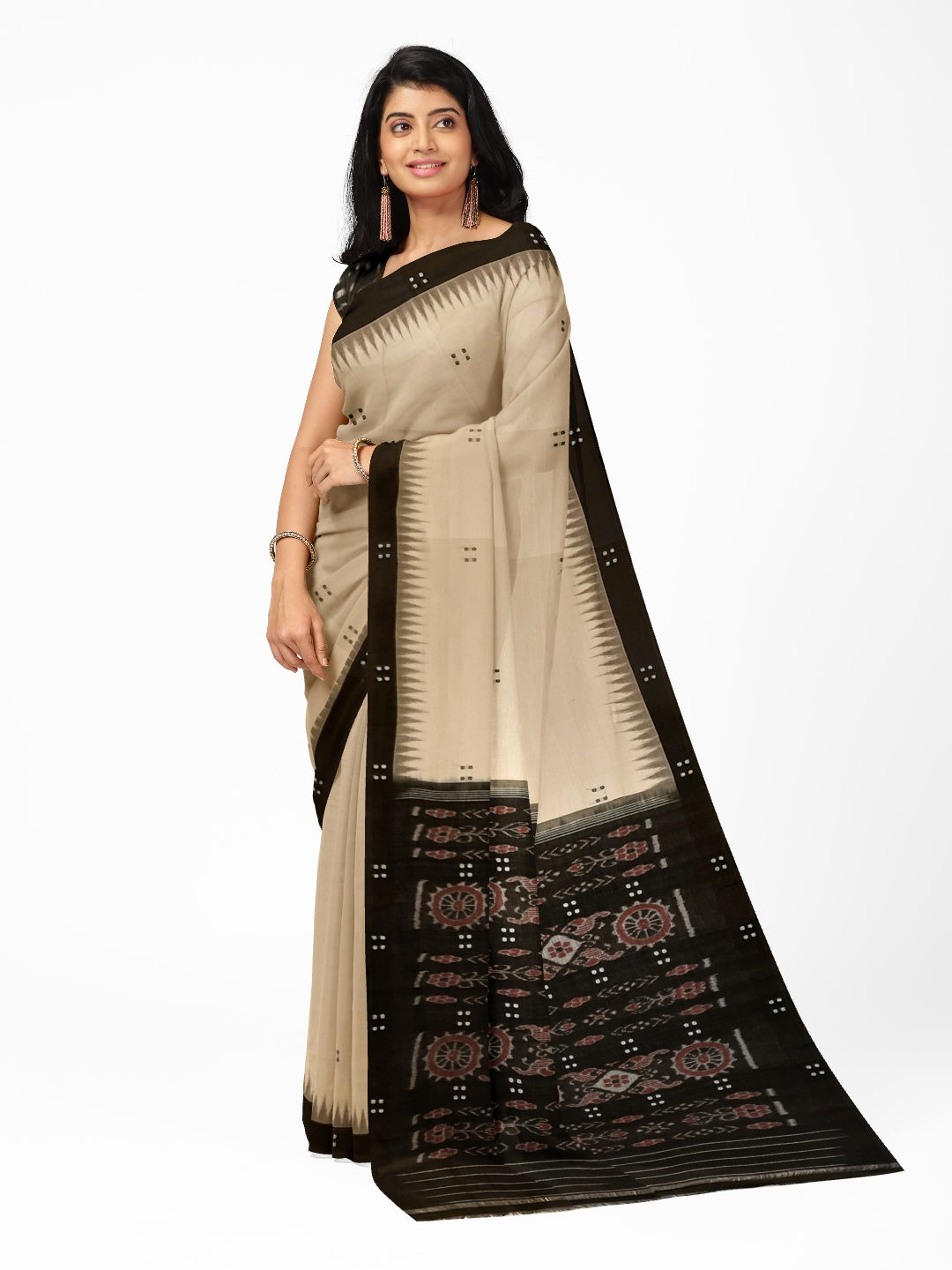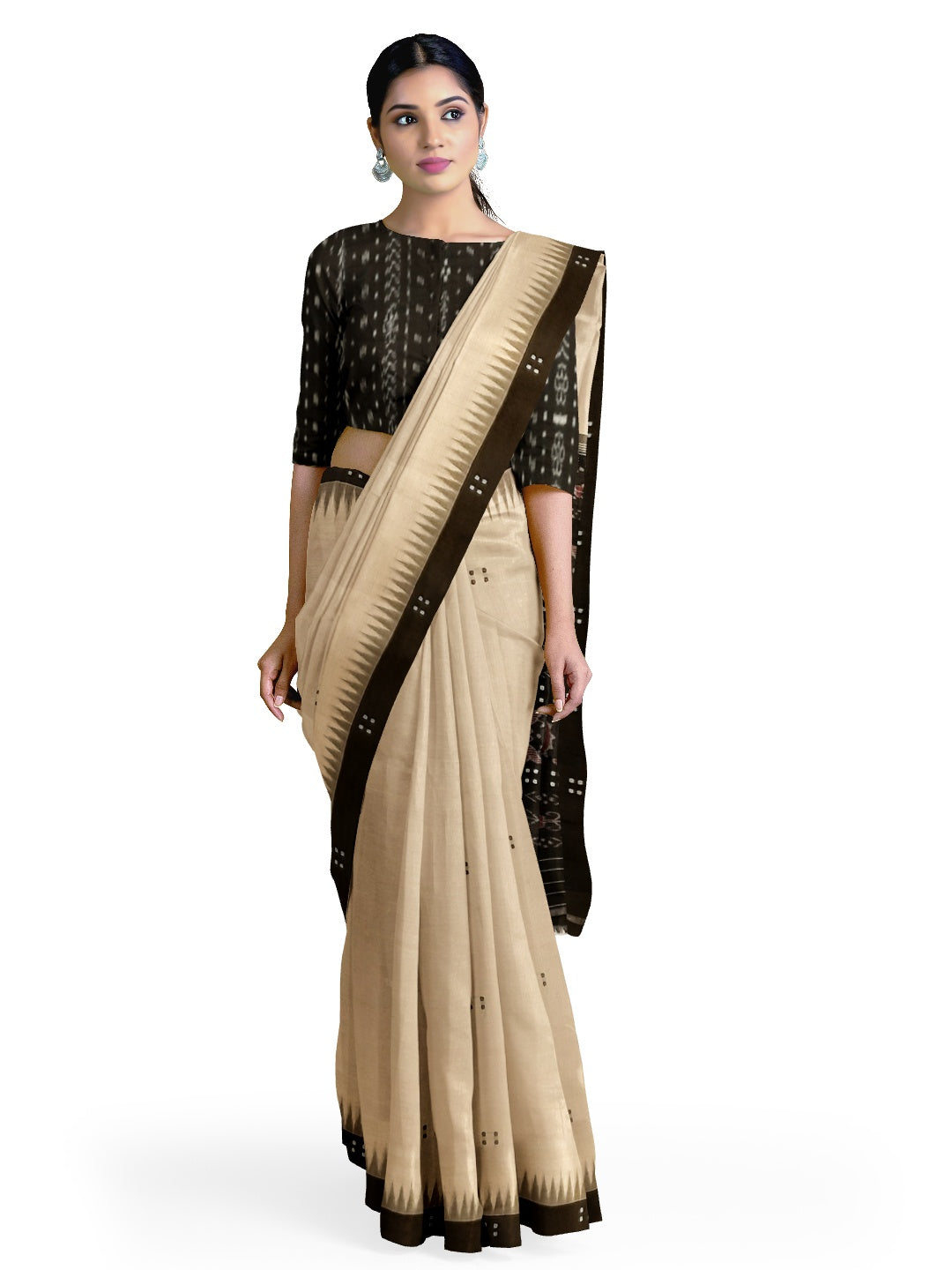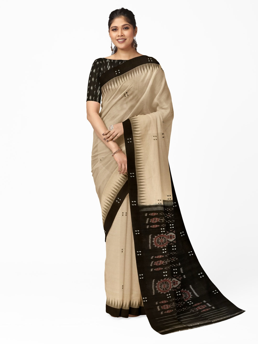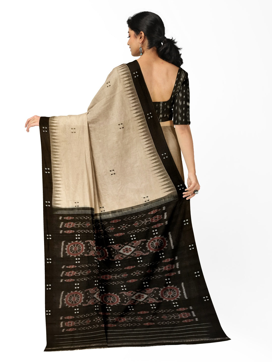 Beige with Black Cotton Odisha Ikat saree with mix match cotton ikat blouse
