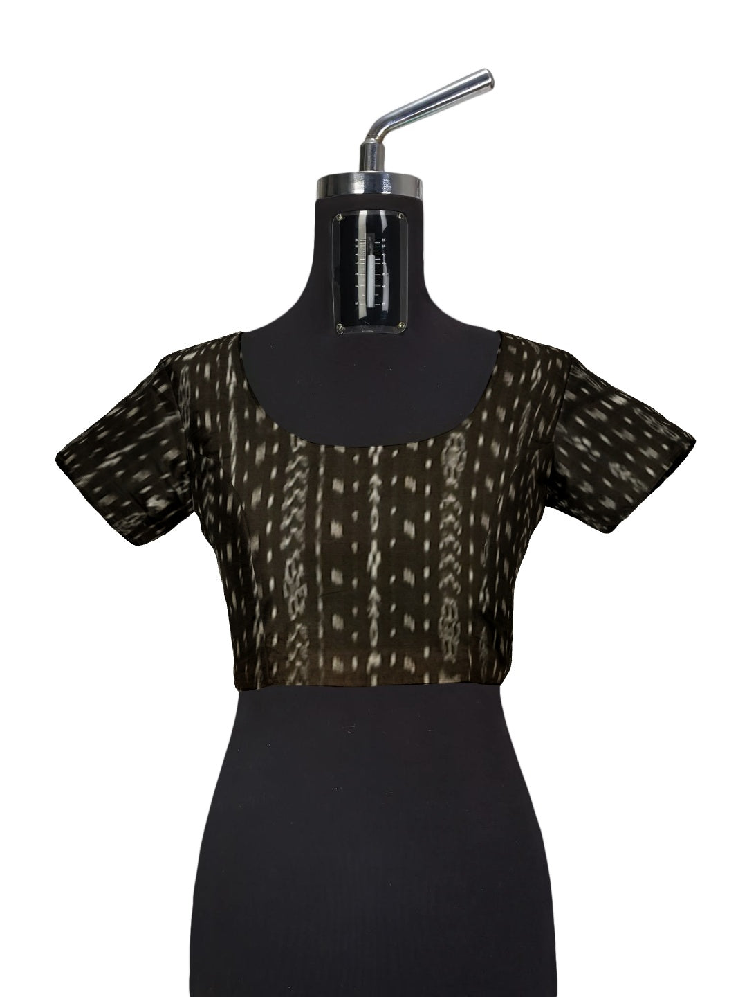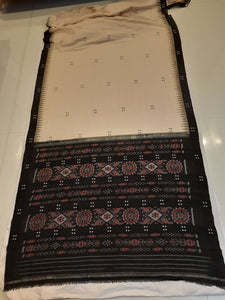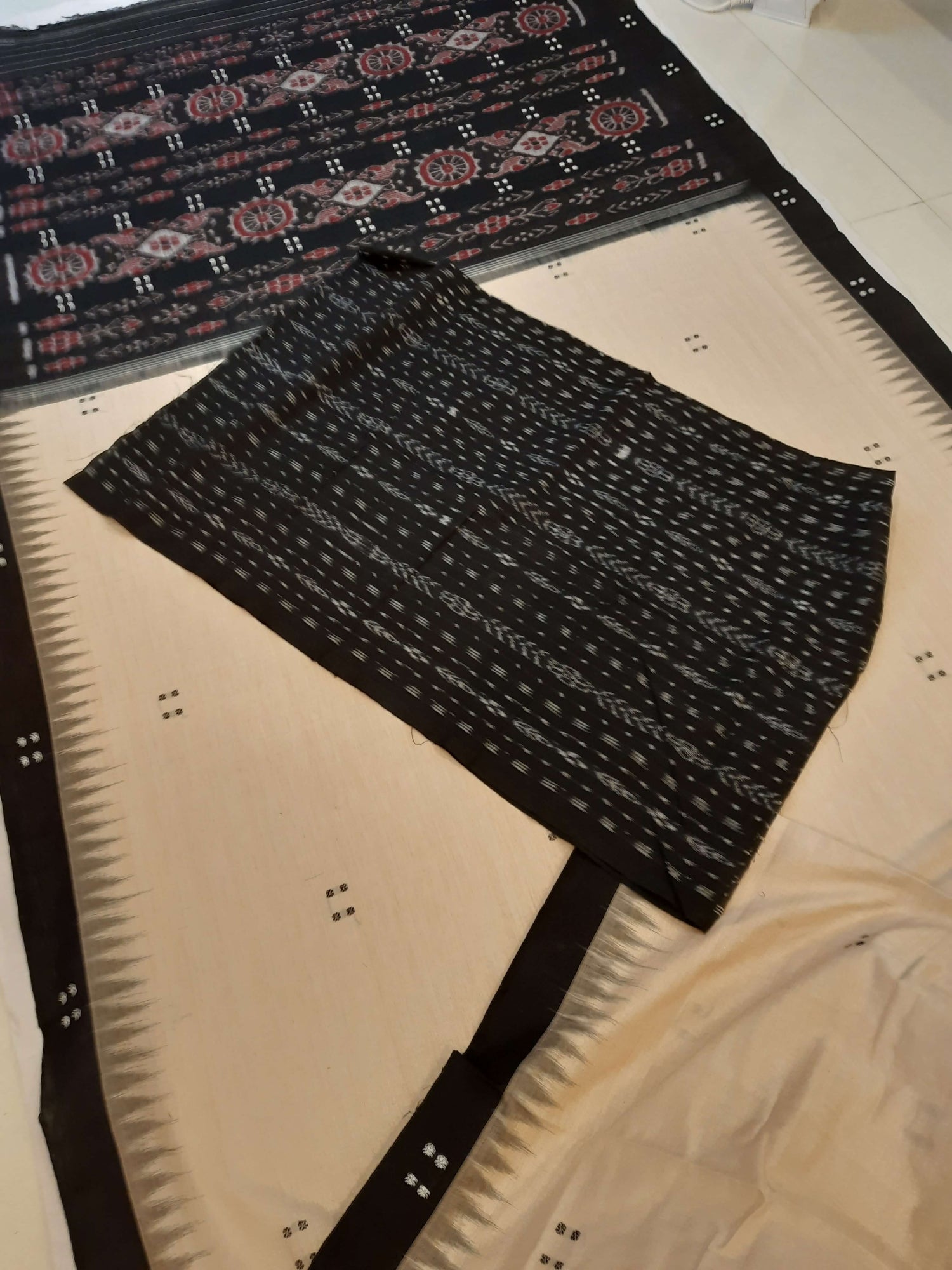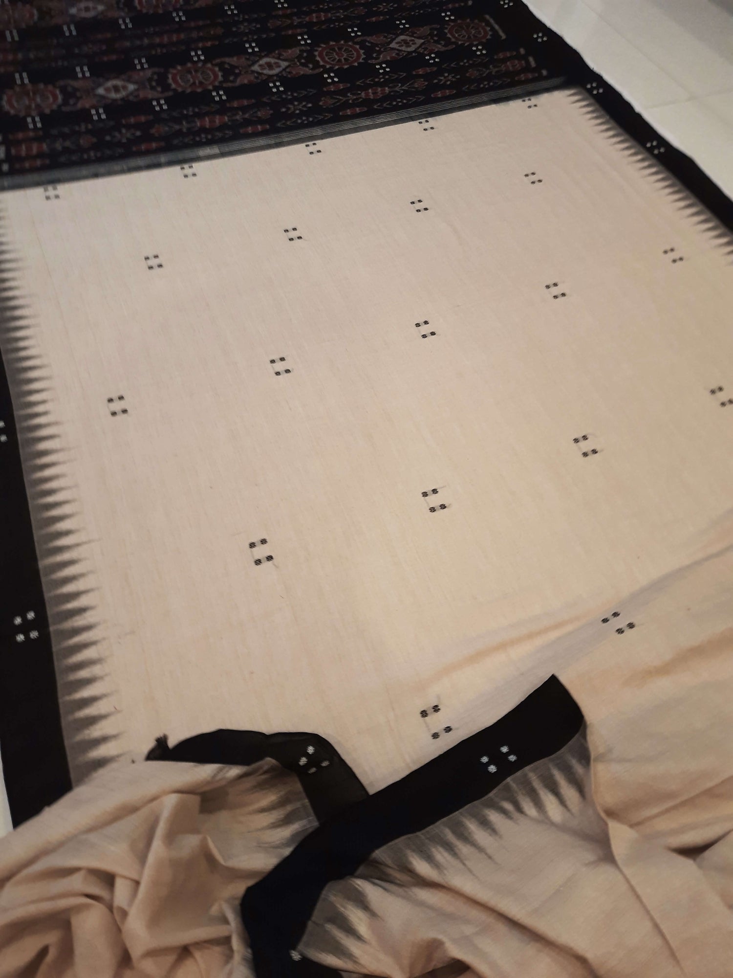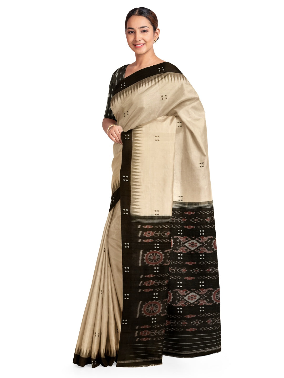 Beige with Black Cotton Odisha Ikat saree with mix match cotton ikat blouse