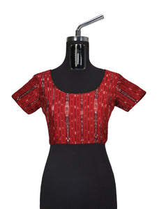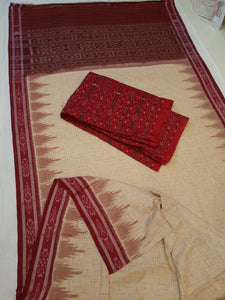 Beige with Maroon Cotton Odisha Ikat saree with mix match cotton ikat blouse piece