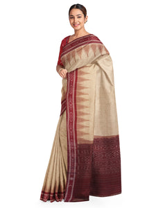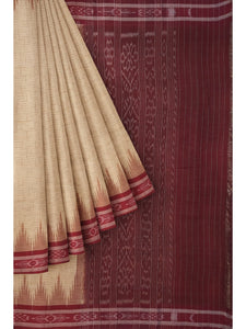 • Beige with Maroon Cotton Odisha Ikat Saree