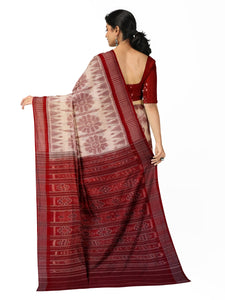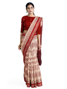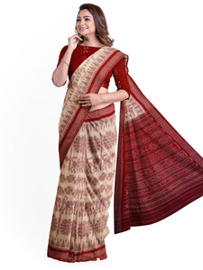 Beige with Maroon Khandua cotton ikat Saree with mix match red cotton Ikat blouse