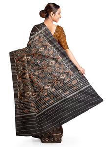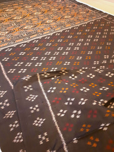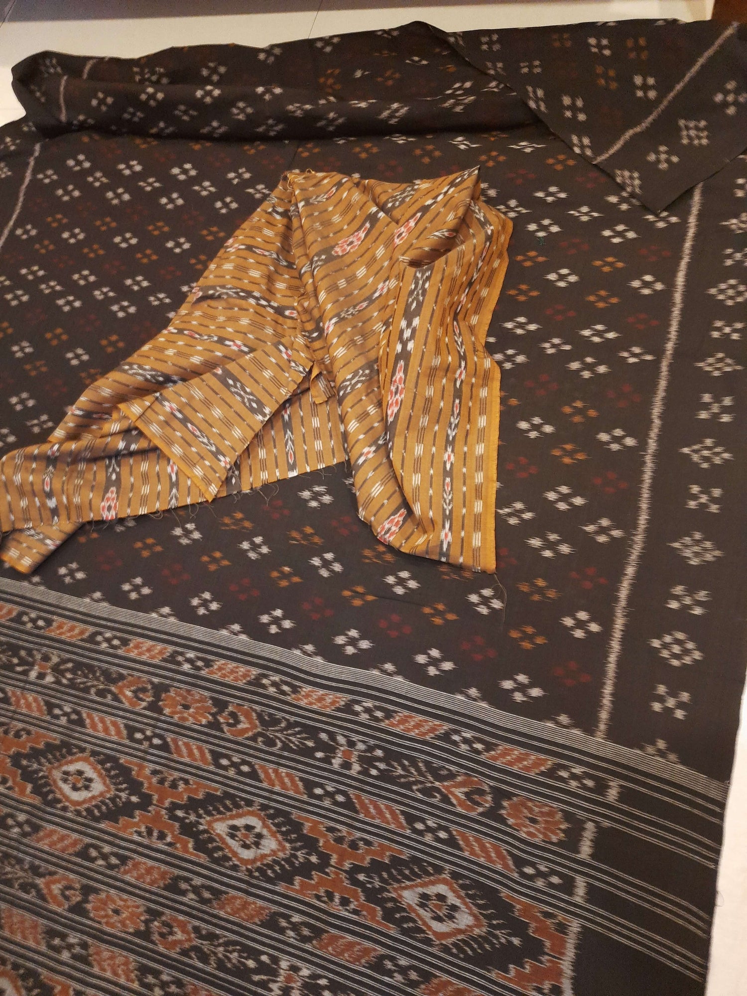Black Cotton Odisha Ikat saree with cotton ikat blouse piece