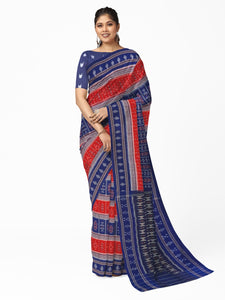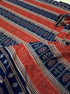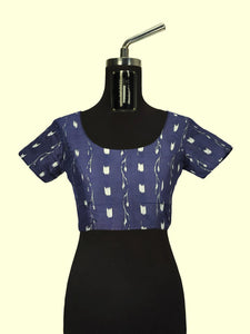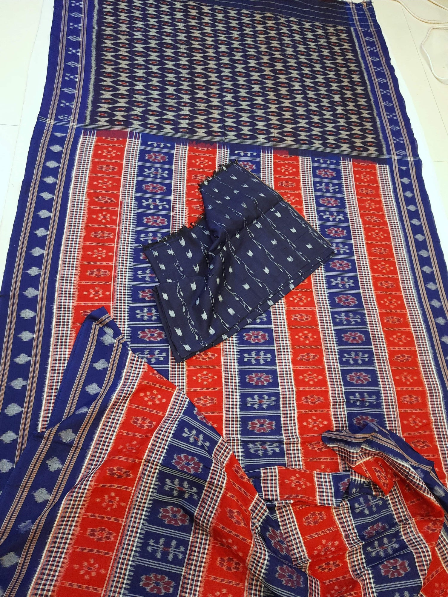 Blue Cotton Odisha Ikat saree with mix match cotton ikat blouse piece