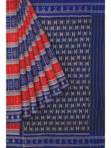 White with Red Cotton Odisha Ikat saree with mix match cotton ikat blouse piece