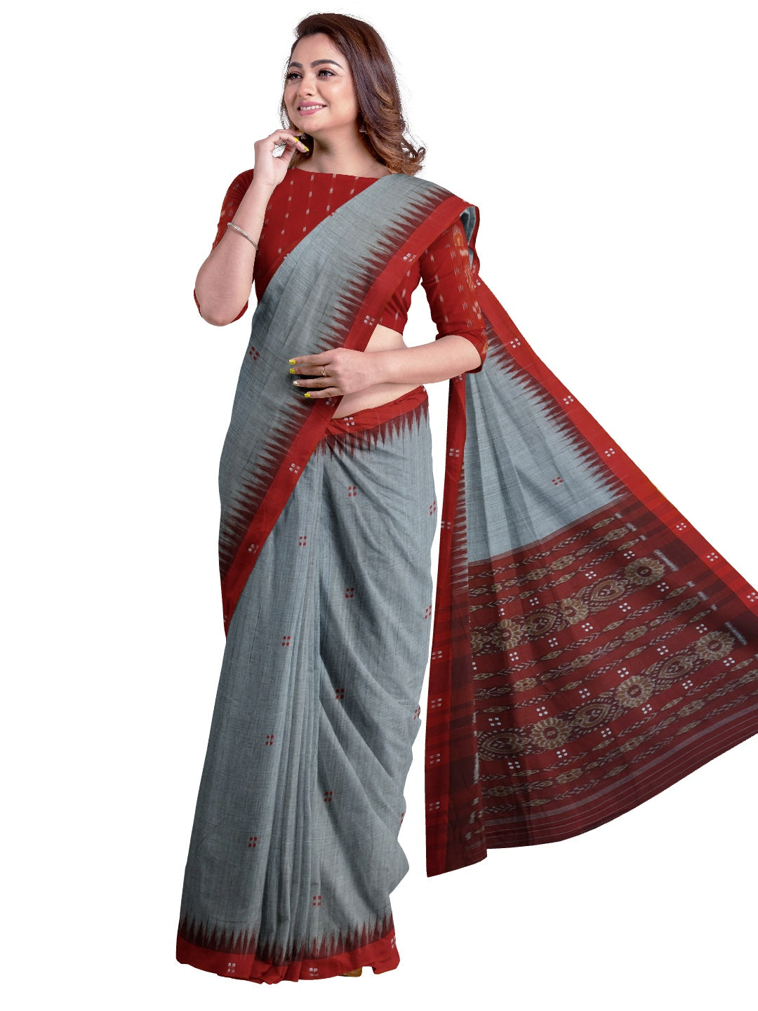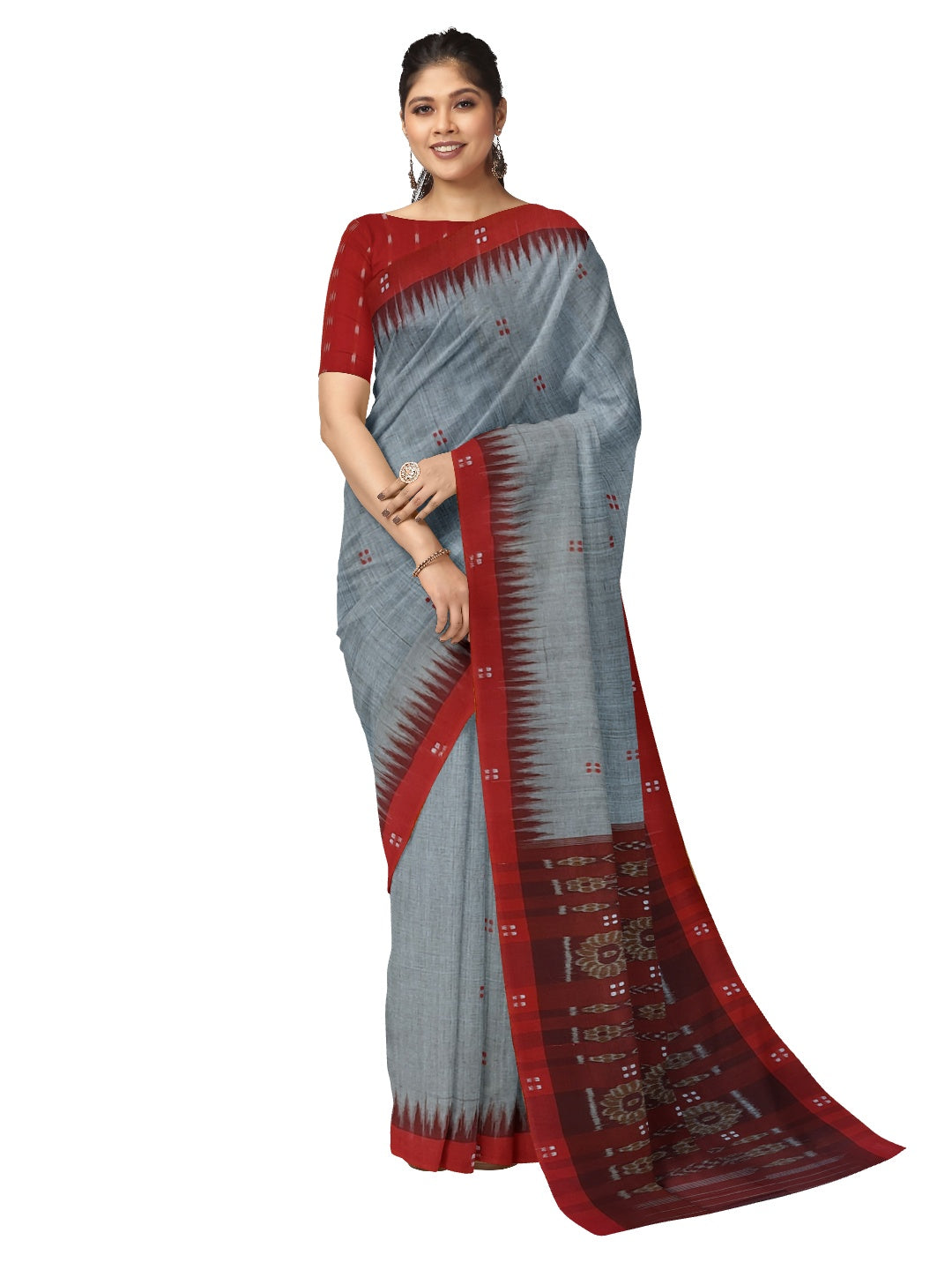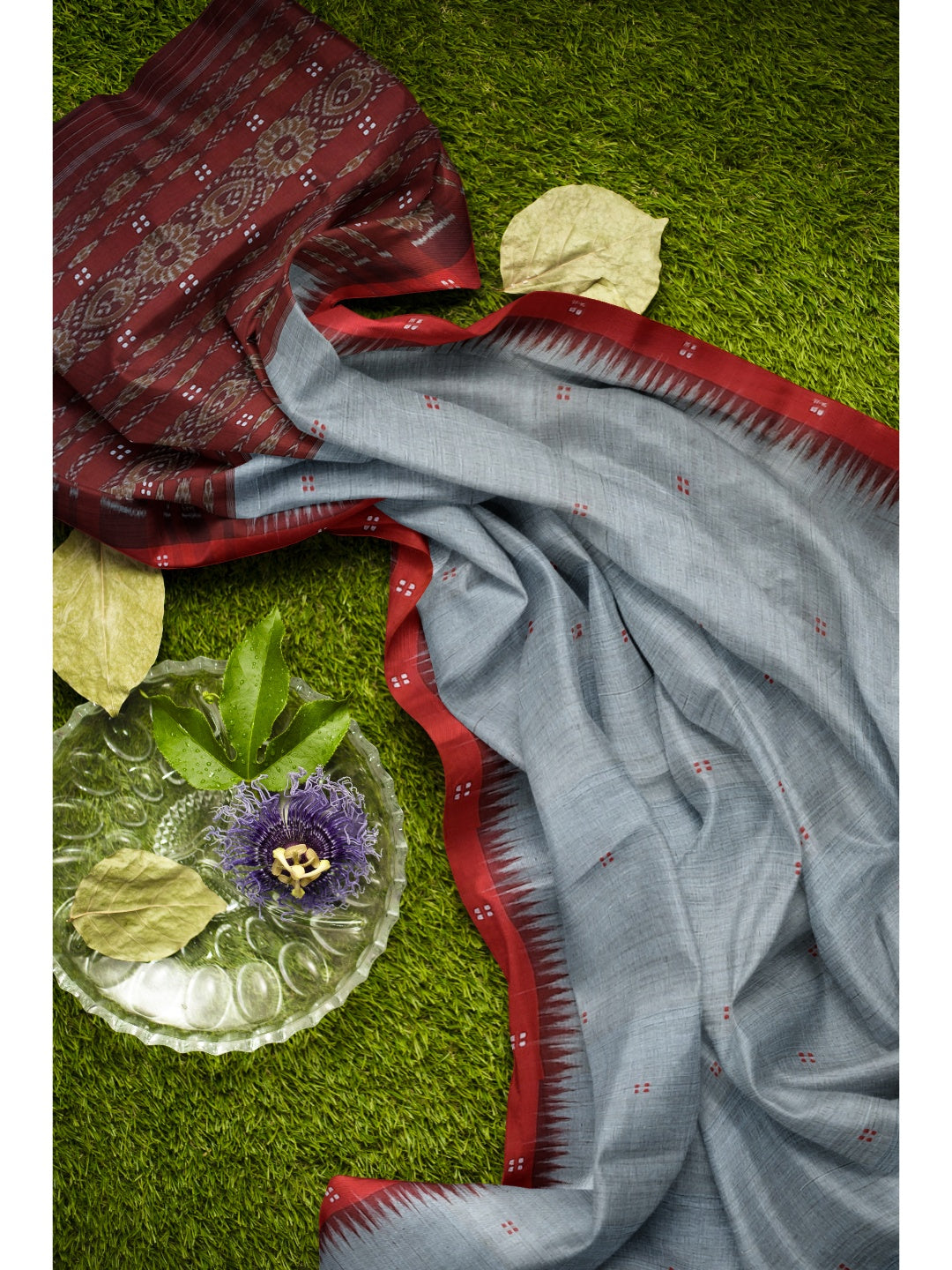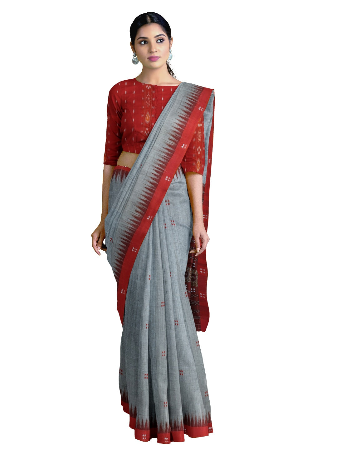 Grey Cotton Odisha Ikat saree with mix match cotton ikat blouse