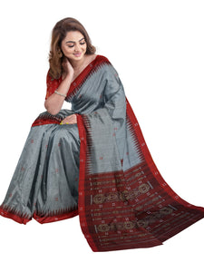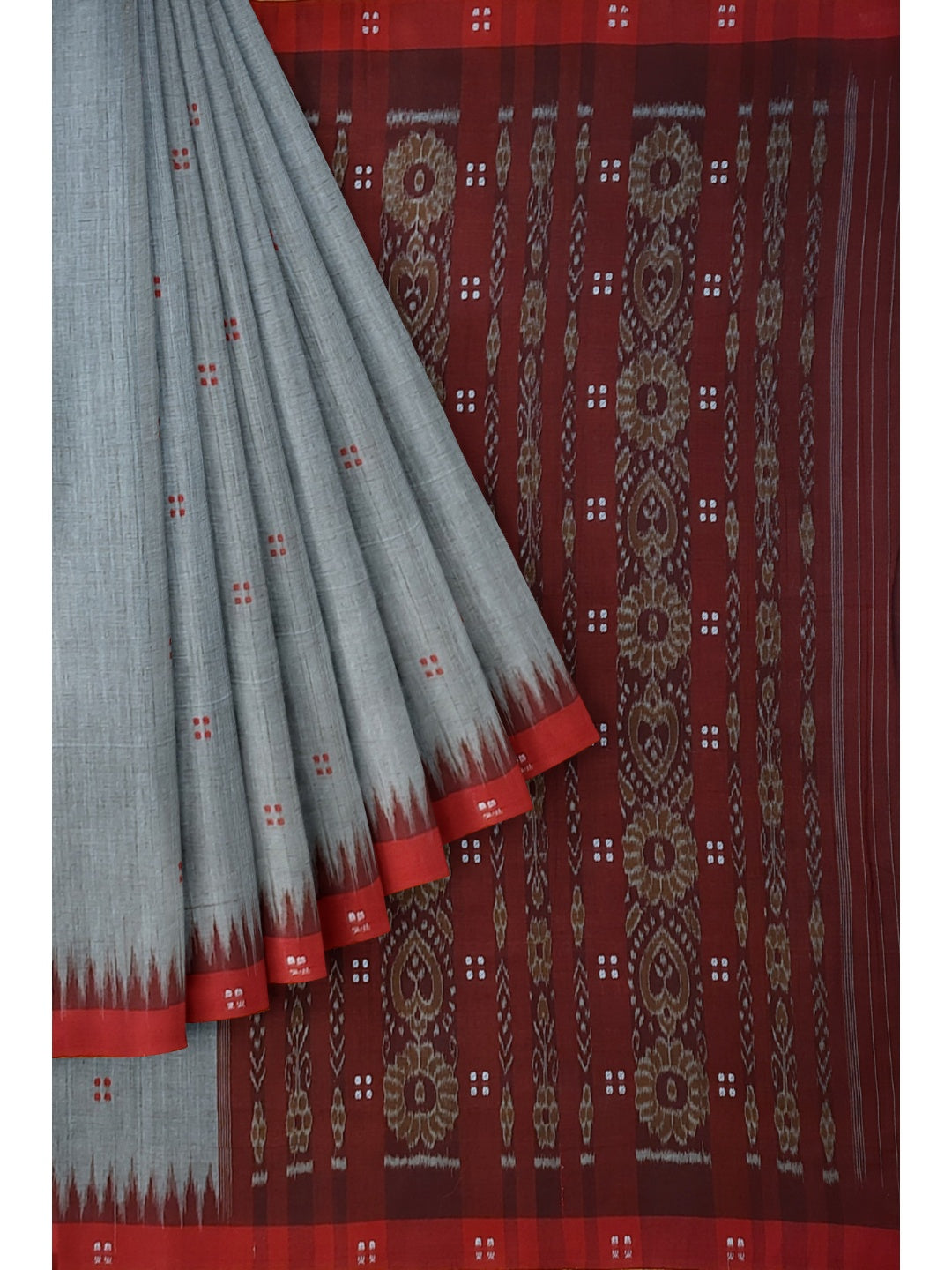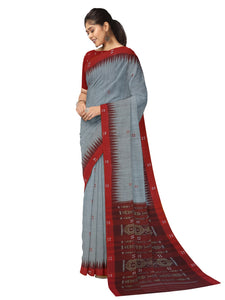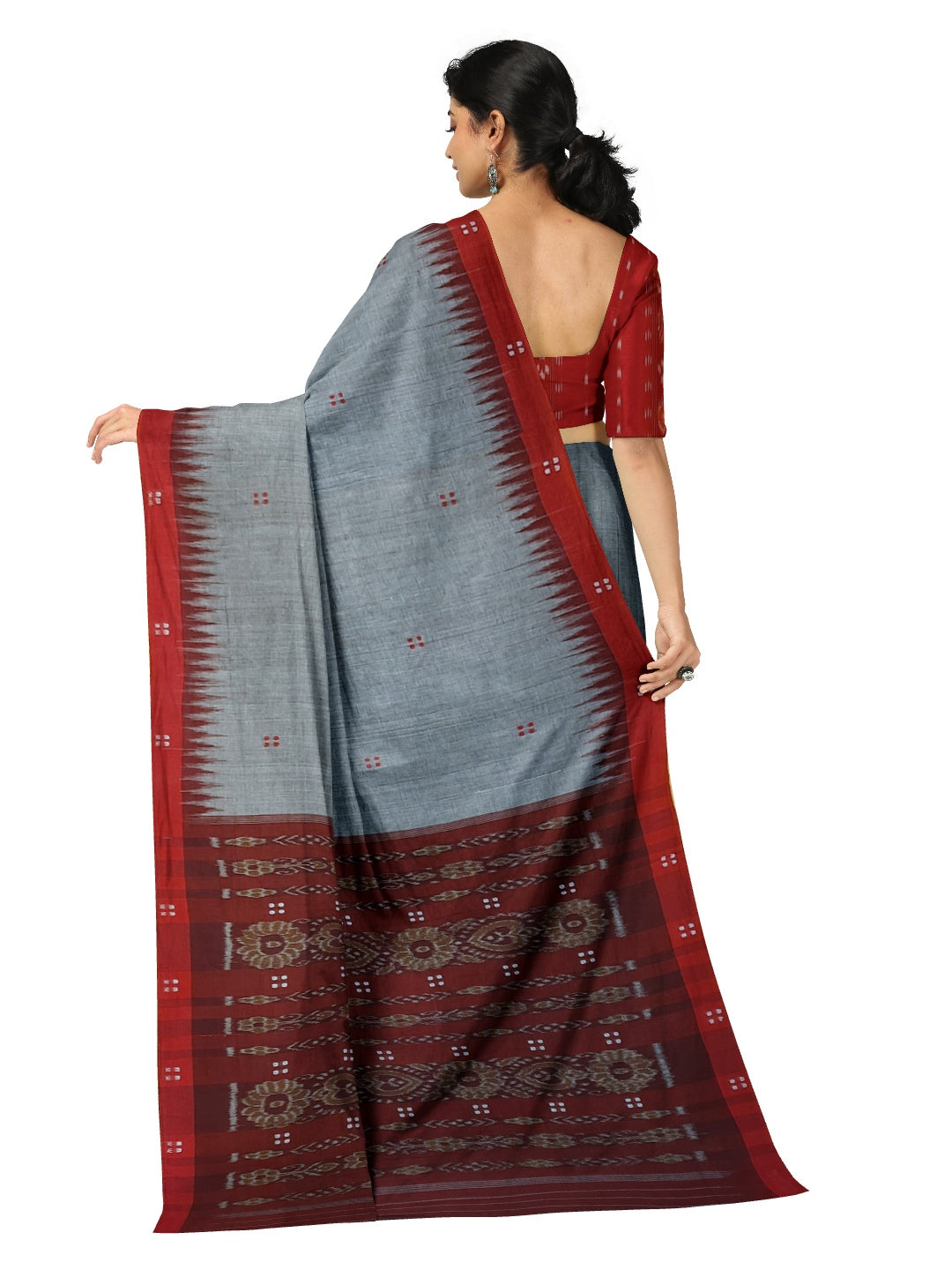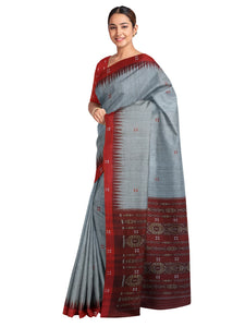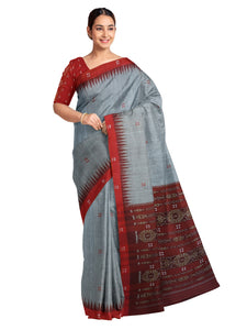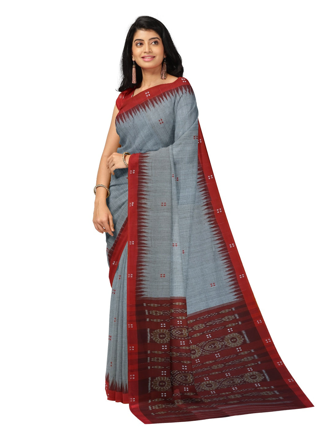 Grey Cotton Odisha Ikat saree with mix match cotton ikat blouse