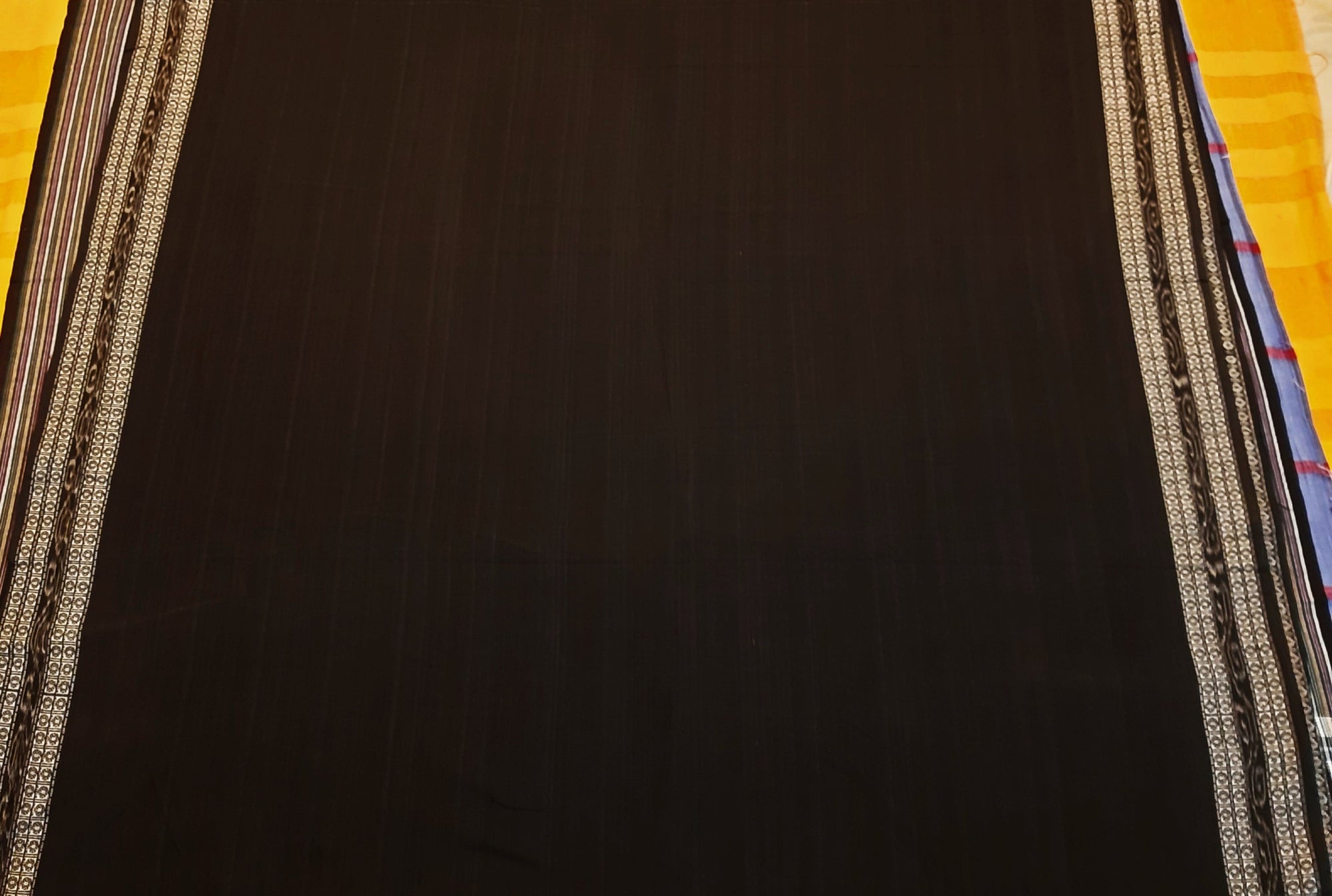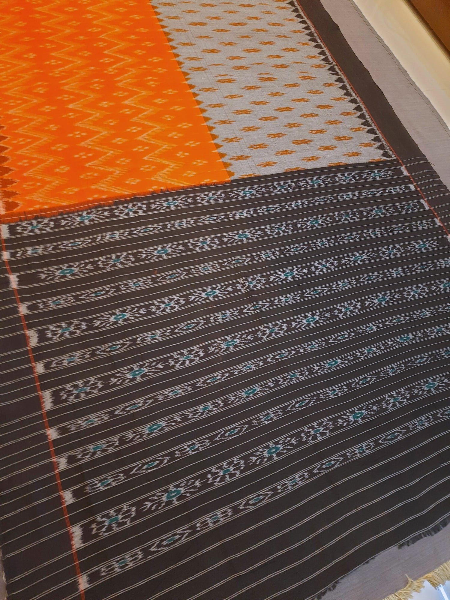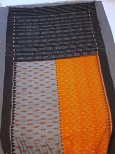 Grey Orange half half colored body Odisha Ikat saree with cotton ikat blouse piece