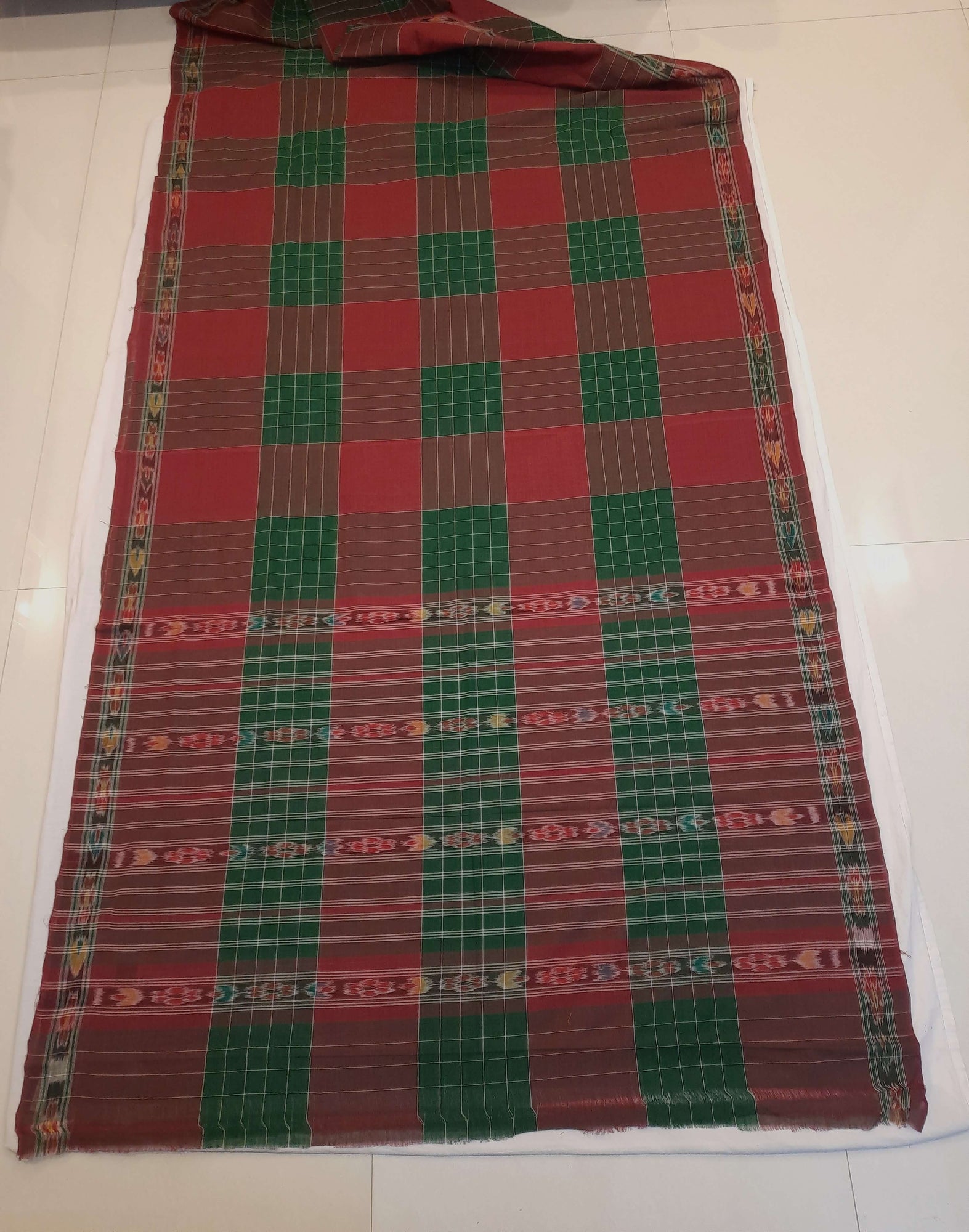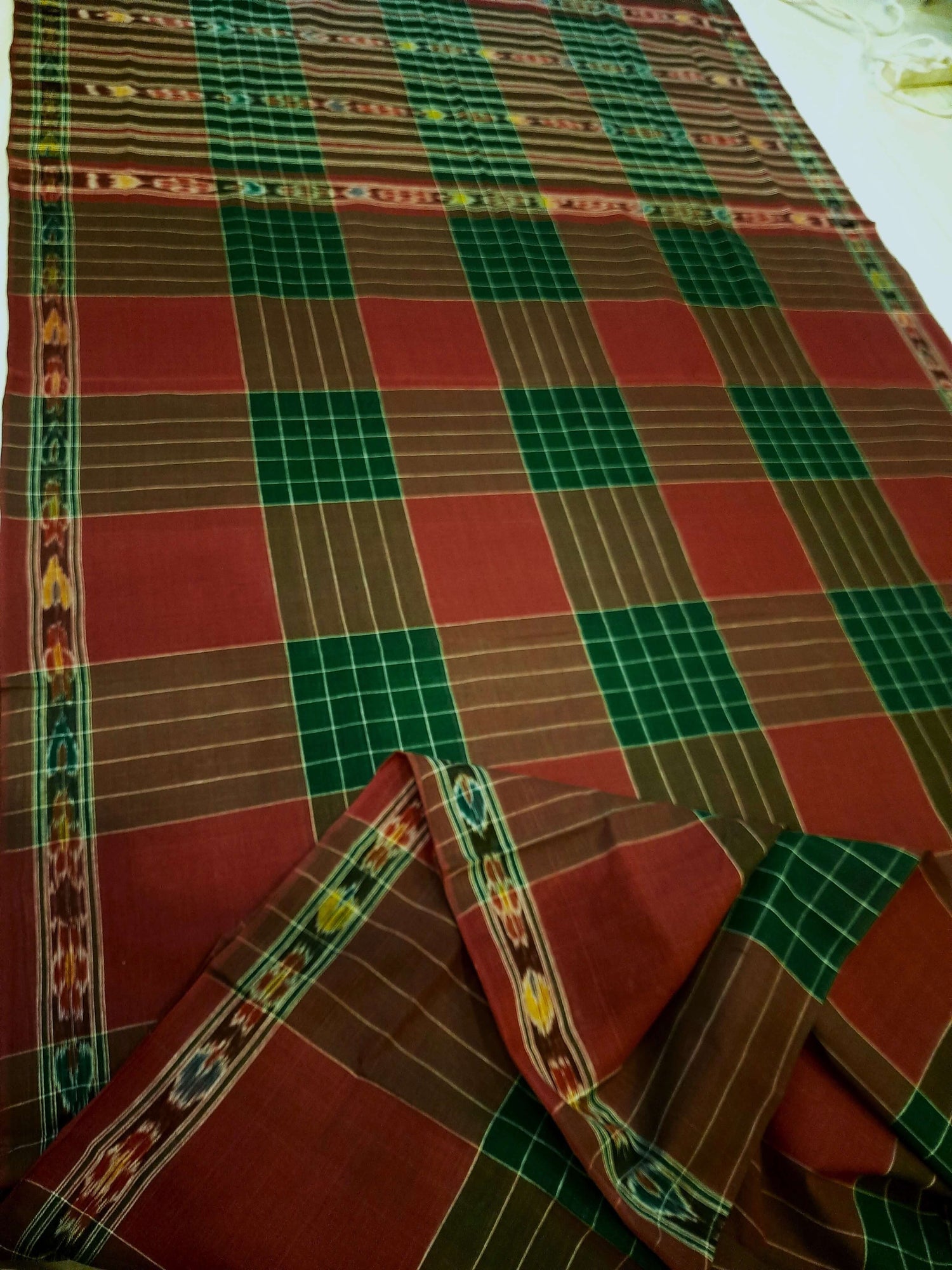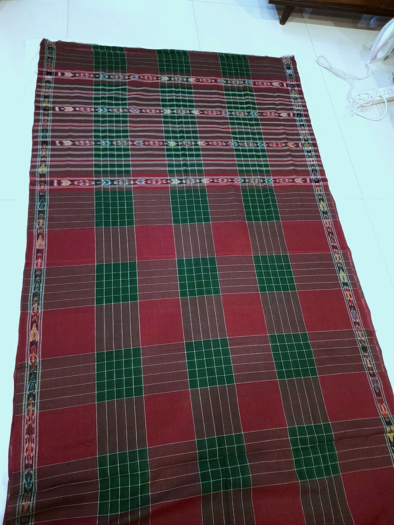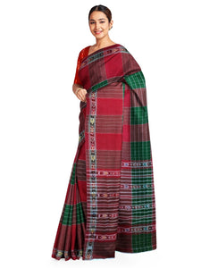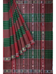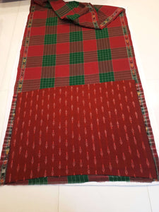 Maroon checkered body Cotton Odisha Ikat saree with mix match blouse piece