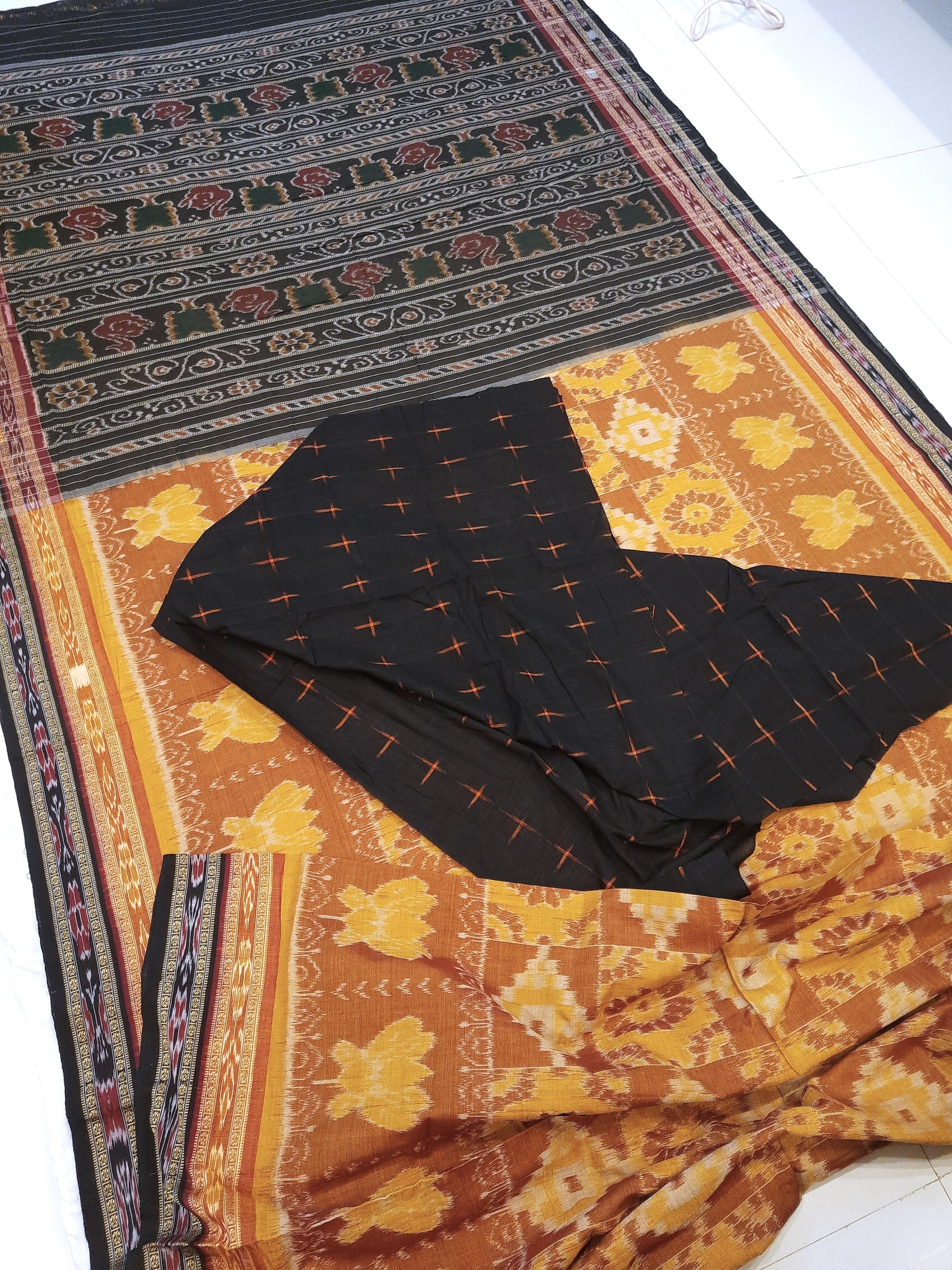 Mustard Yellow Odisha Ikat saree with cotton ikat blouse piece