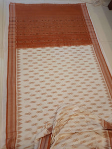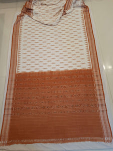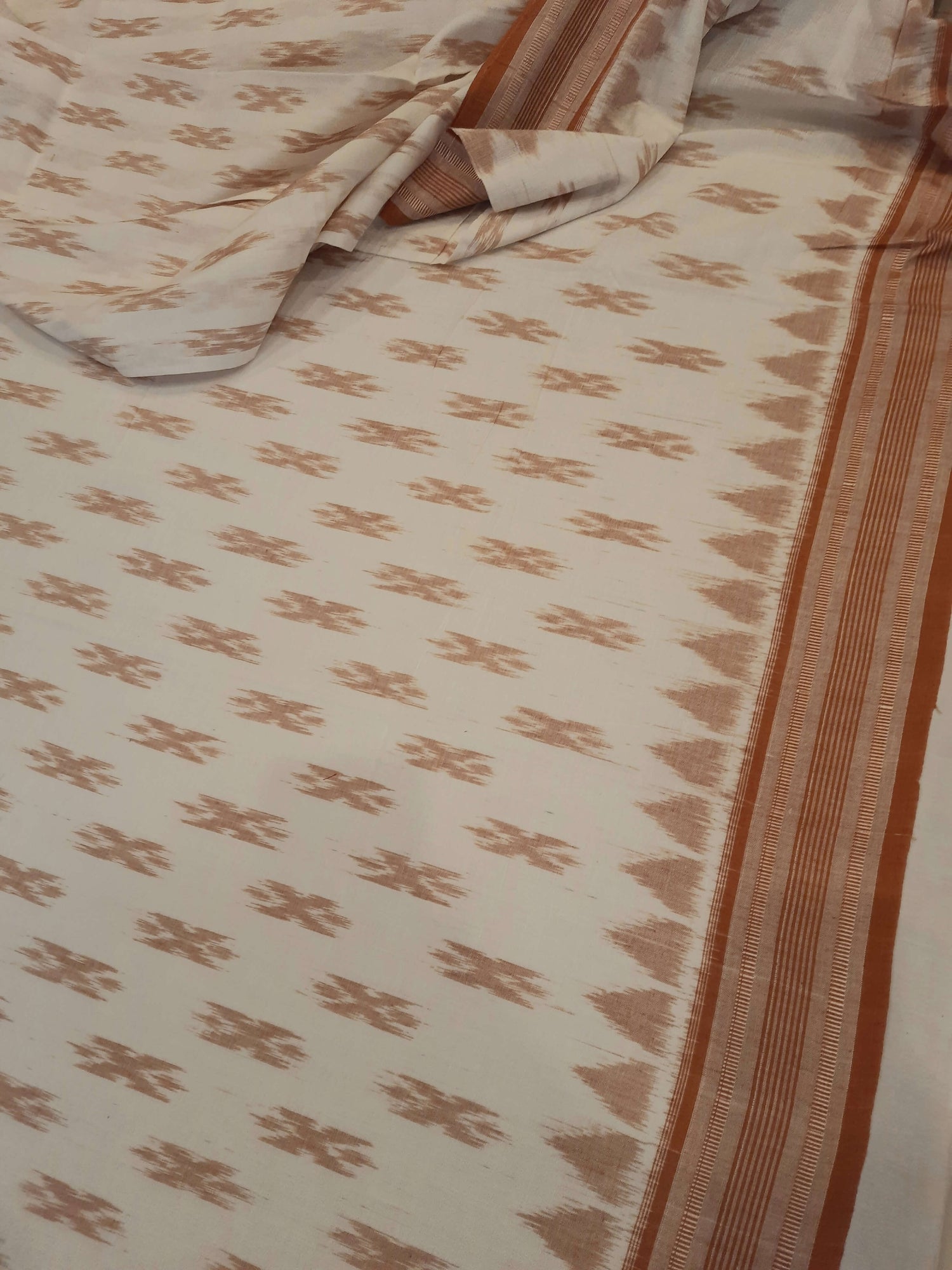 Off-white Cotton Odisha Ikat saree with cotton ikat blouse piece