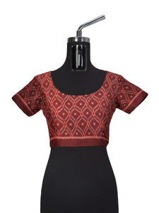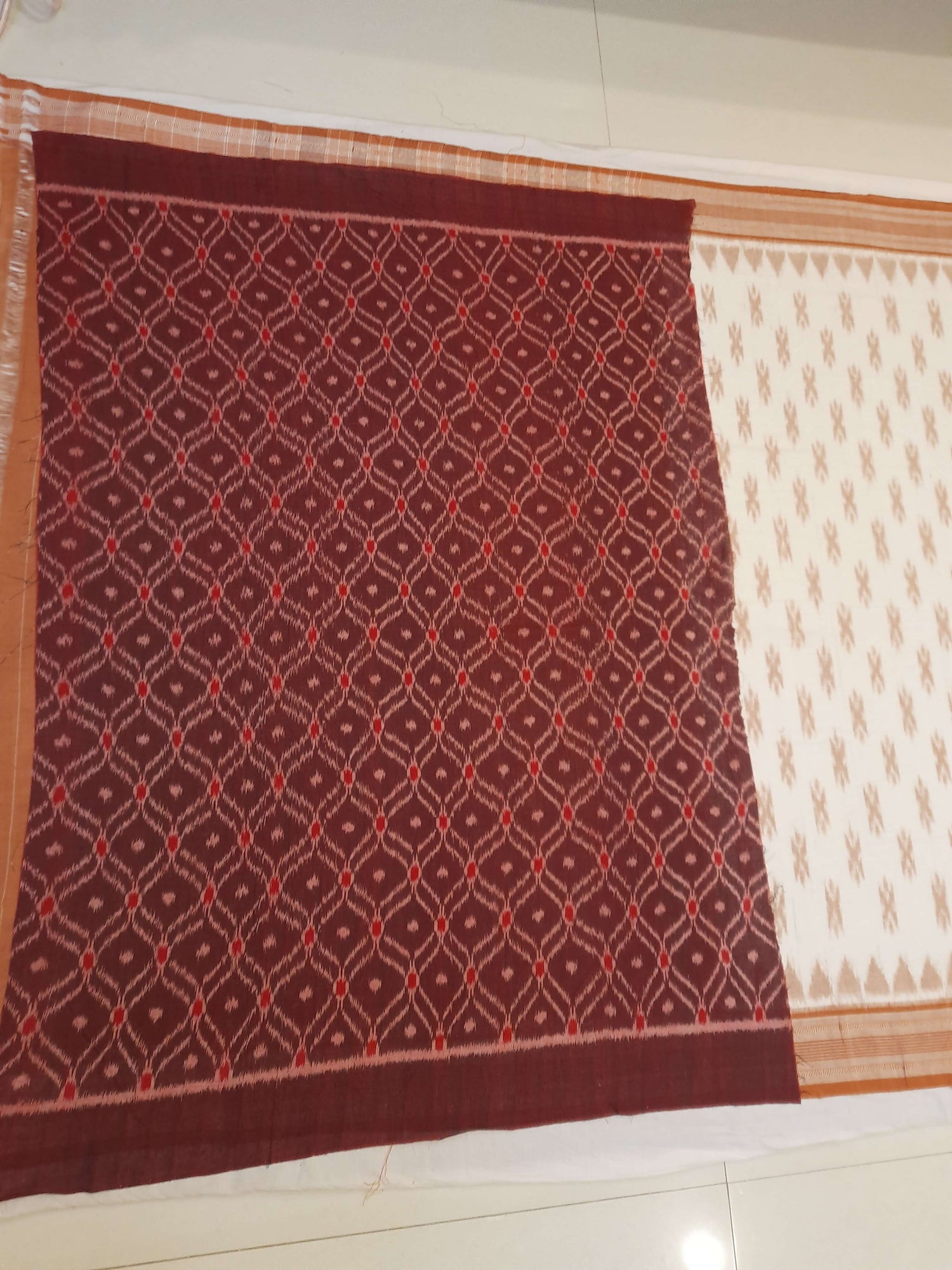 Beige with Maroon Cotton Odisha Ikat saree with mix match cotton ikat blouse