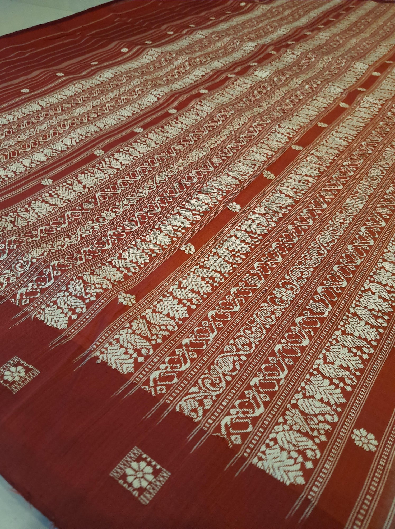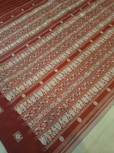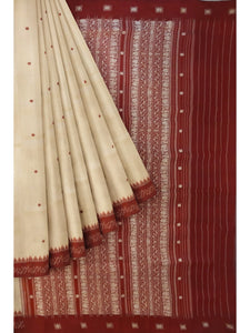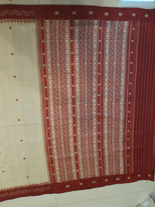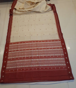 Offwhite with Maroon Sambalpuri Silk Saree with running plain blouse piece