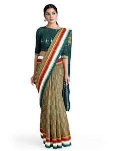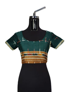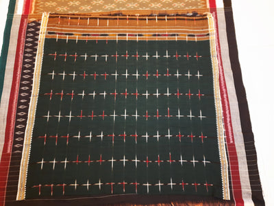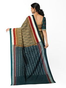OliveGreen Cotton Odisha Ikat saree with mix match cotton ikat blouse piece