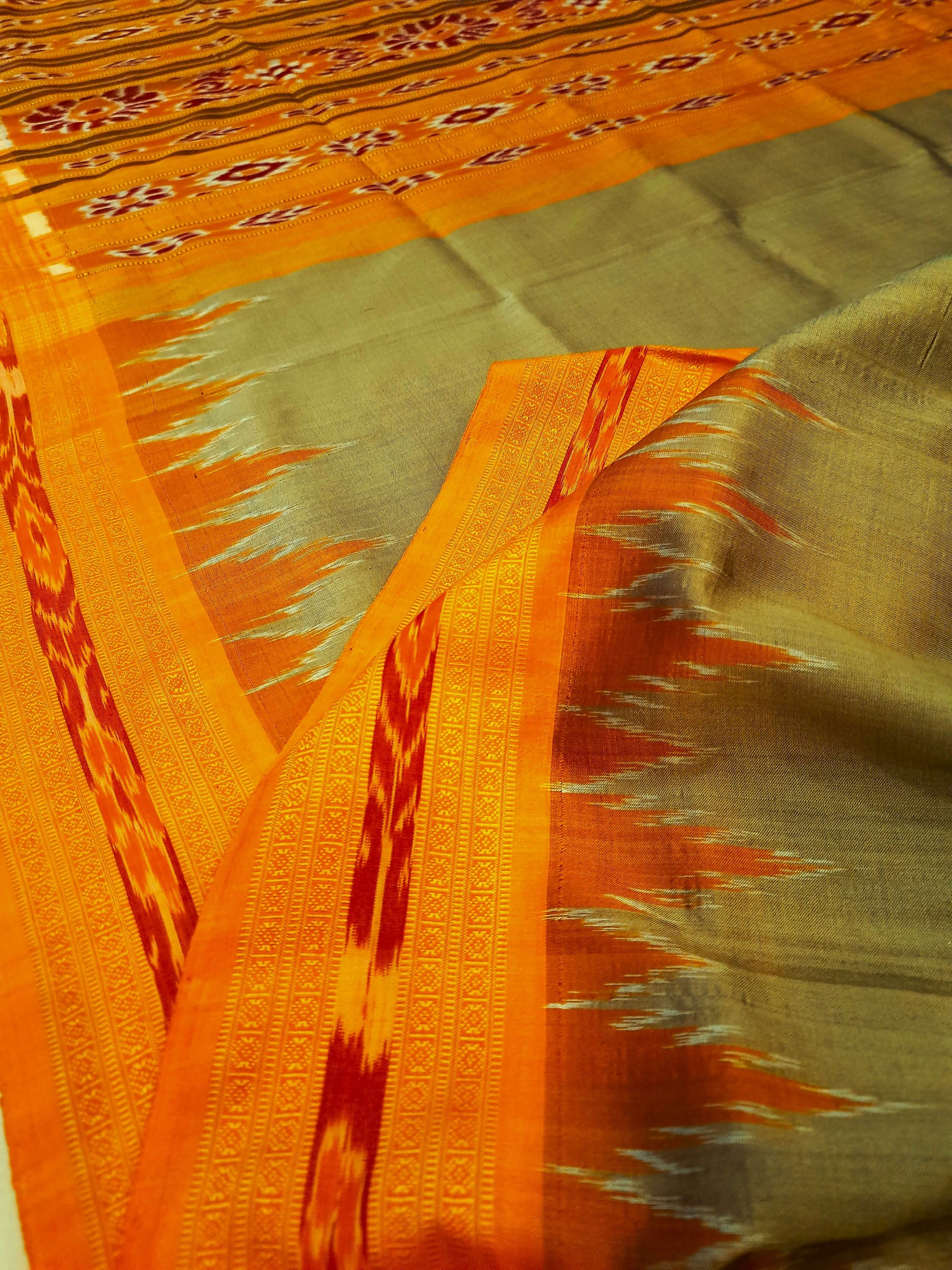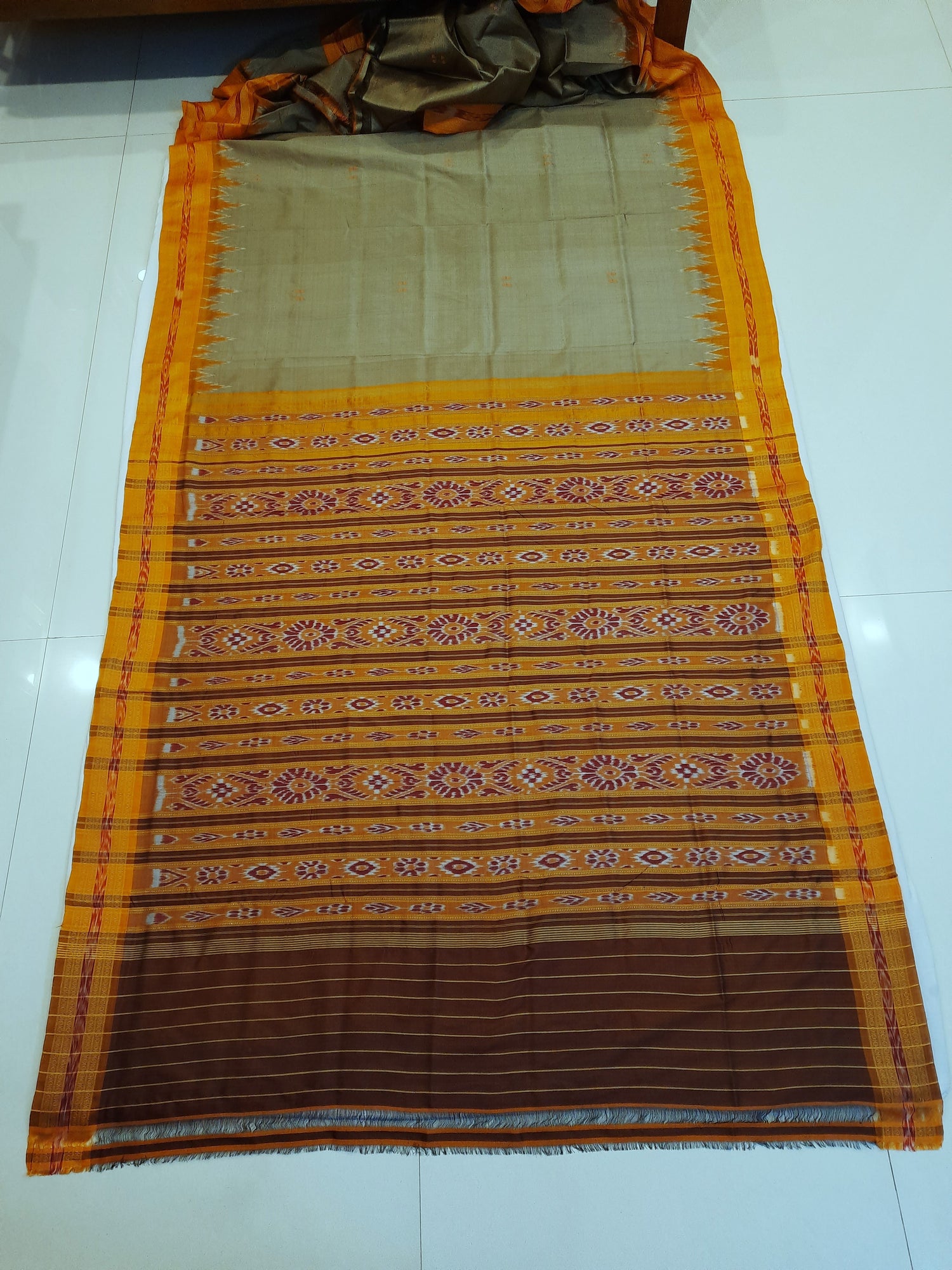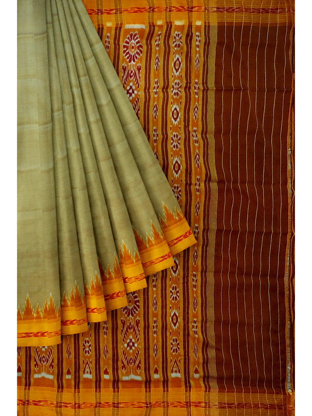 Beige with Orange Odisha Khandua Pata Silk Saree