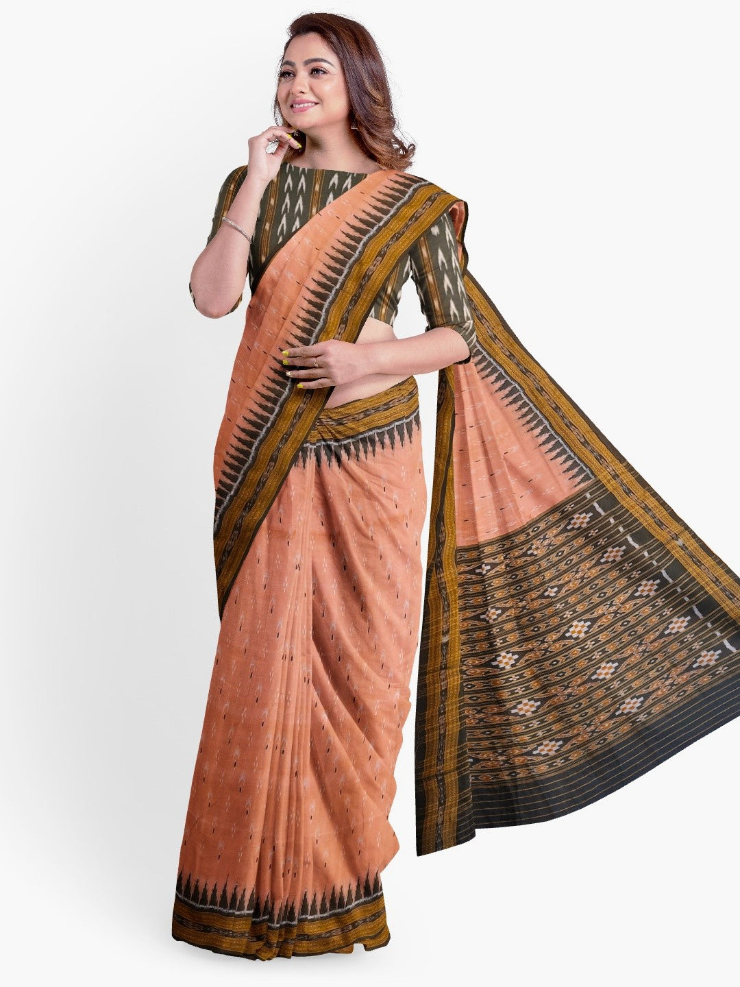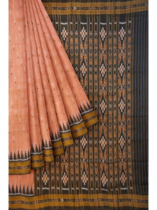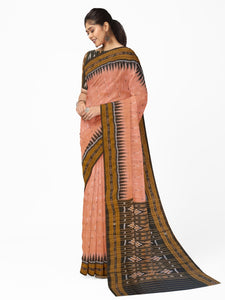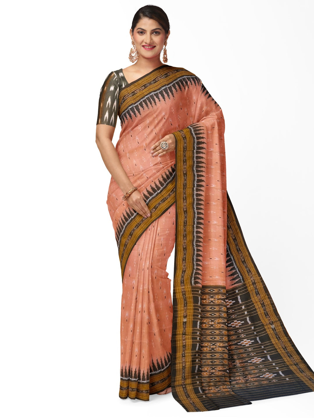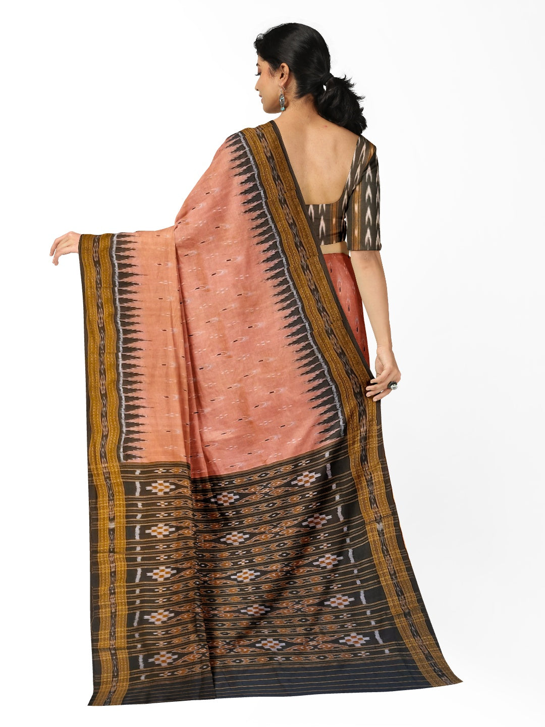 Peach Odisha Khandua Pata Silk Saree with cotton ikat blouse piece