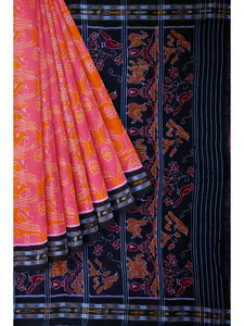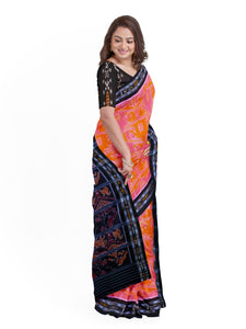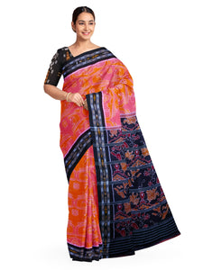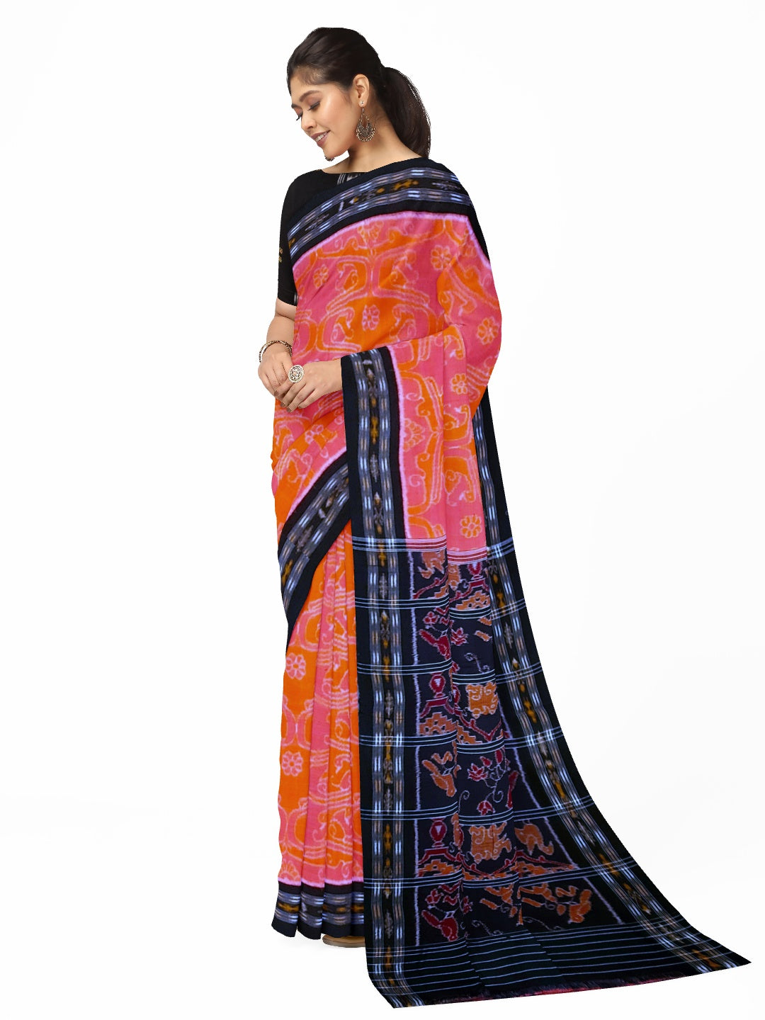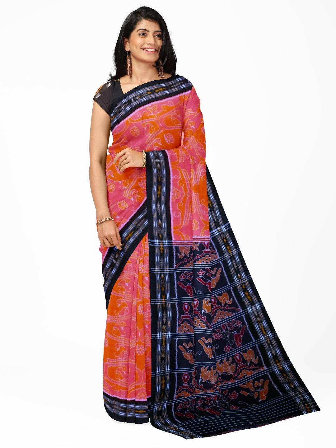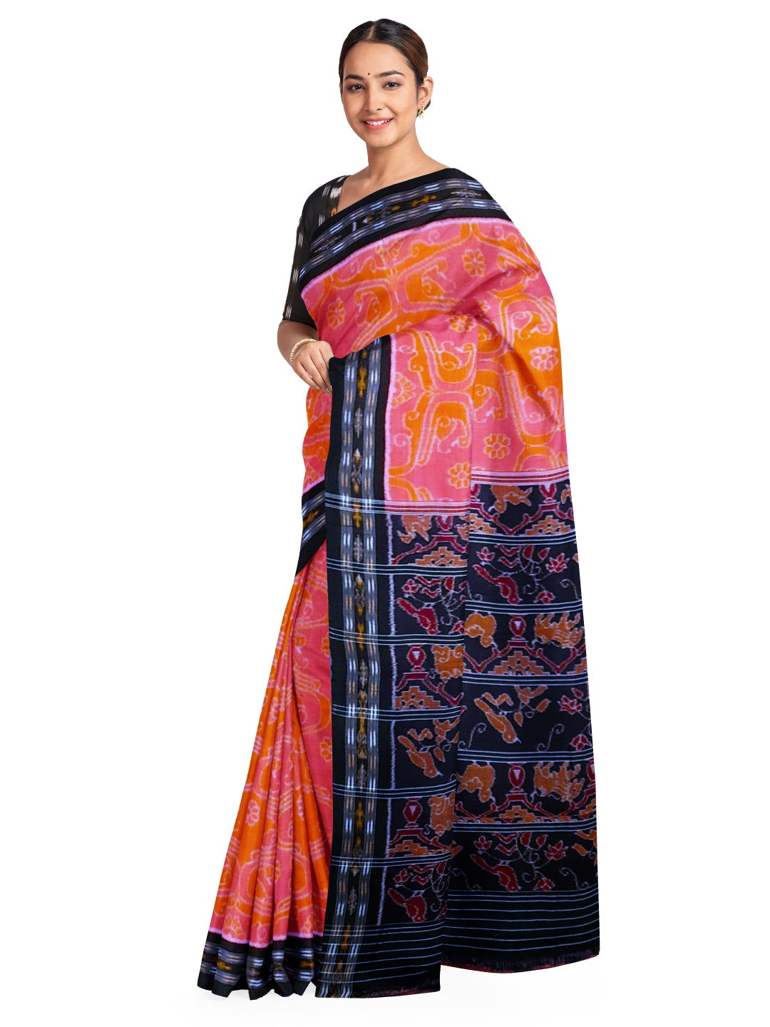 Pink and Orange Odisha Ikat saree with matching cotton ikat blouse piece