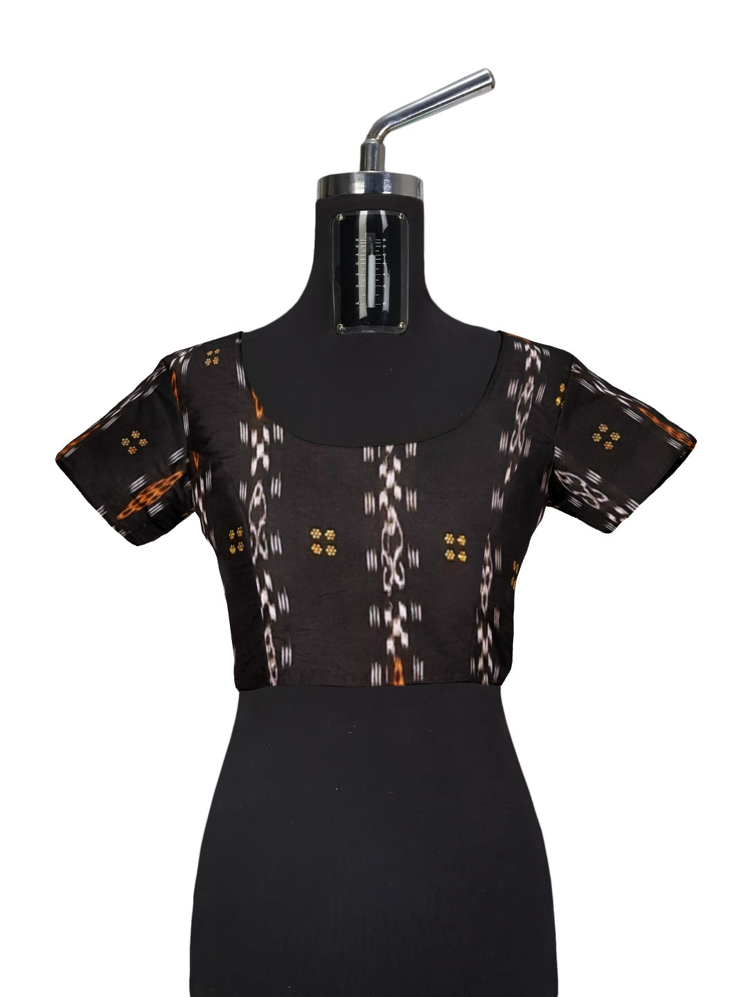 Beige with Maroon Cotton Odisha Ikat saree with mix match cotton ikat blouse