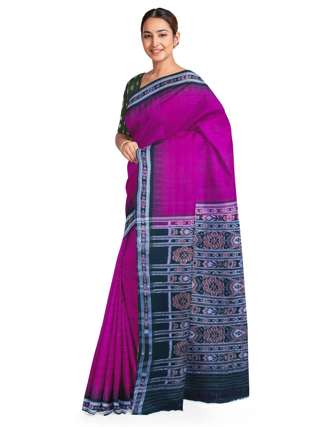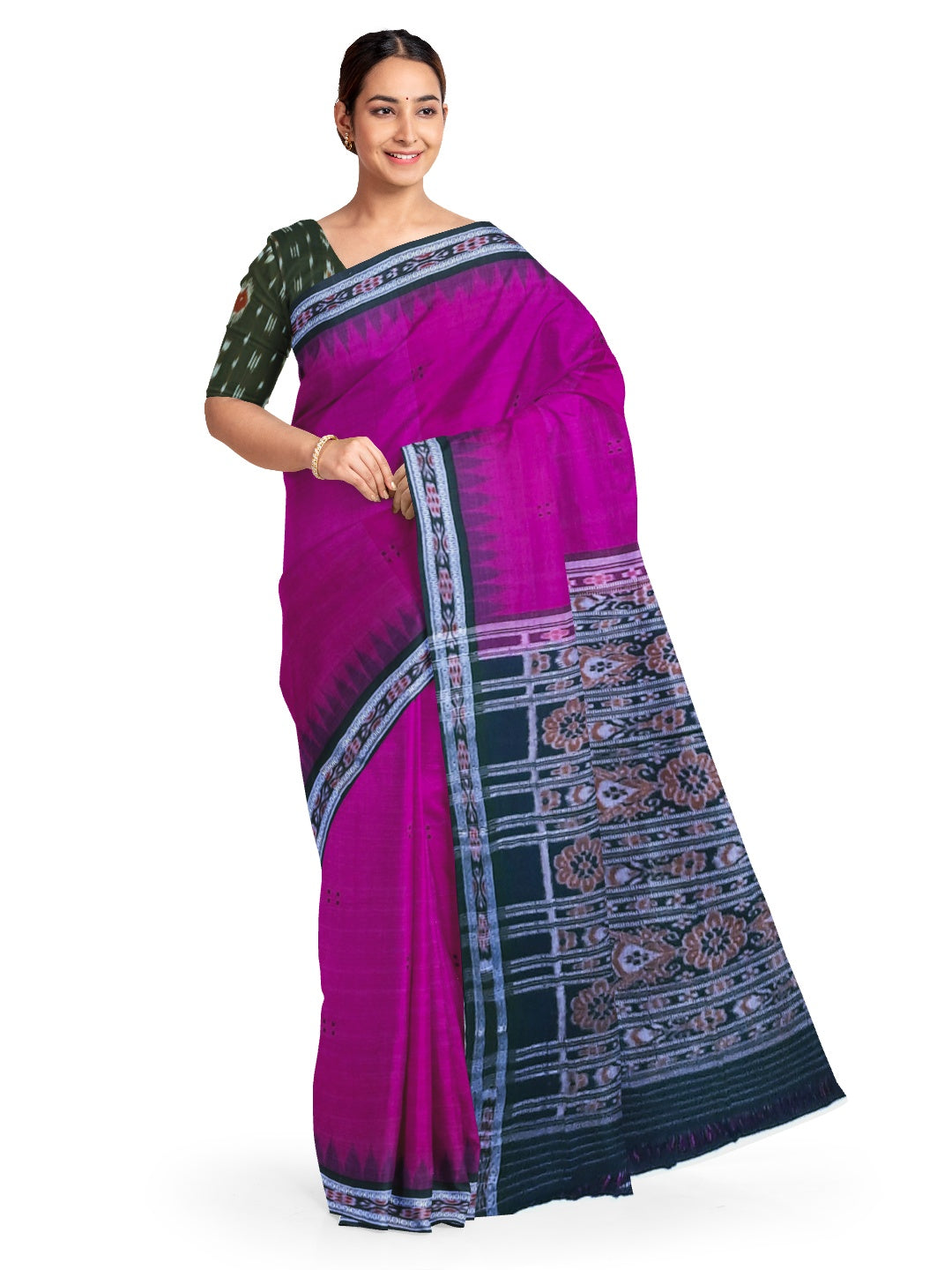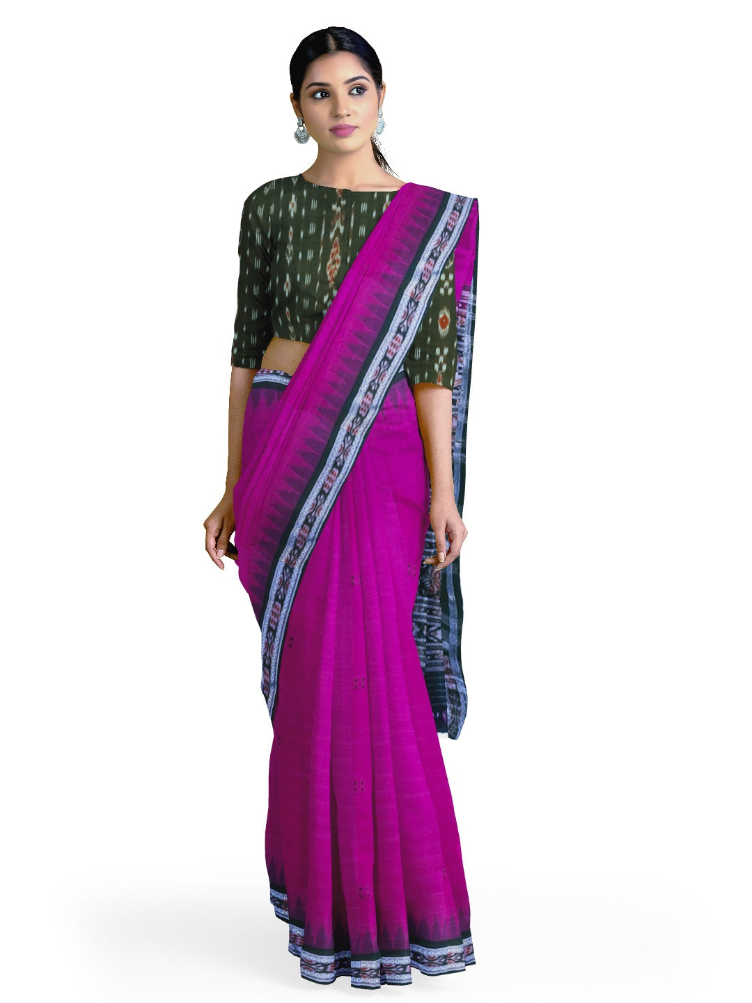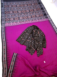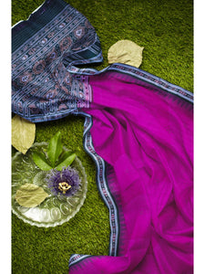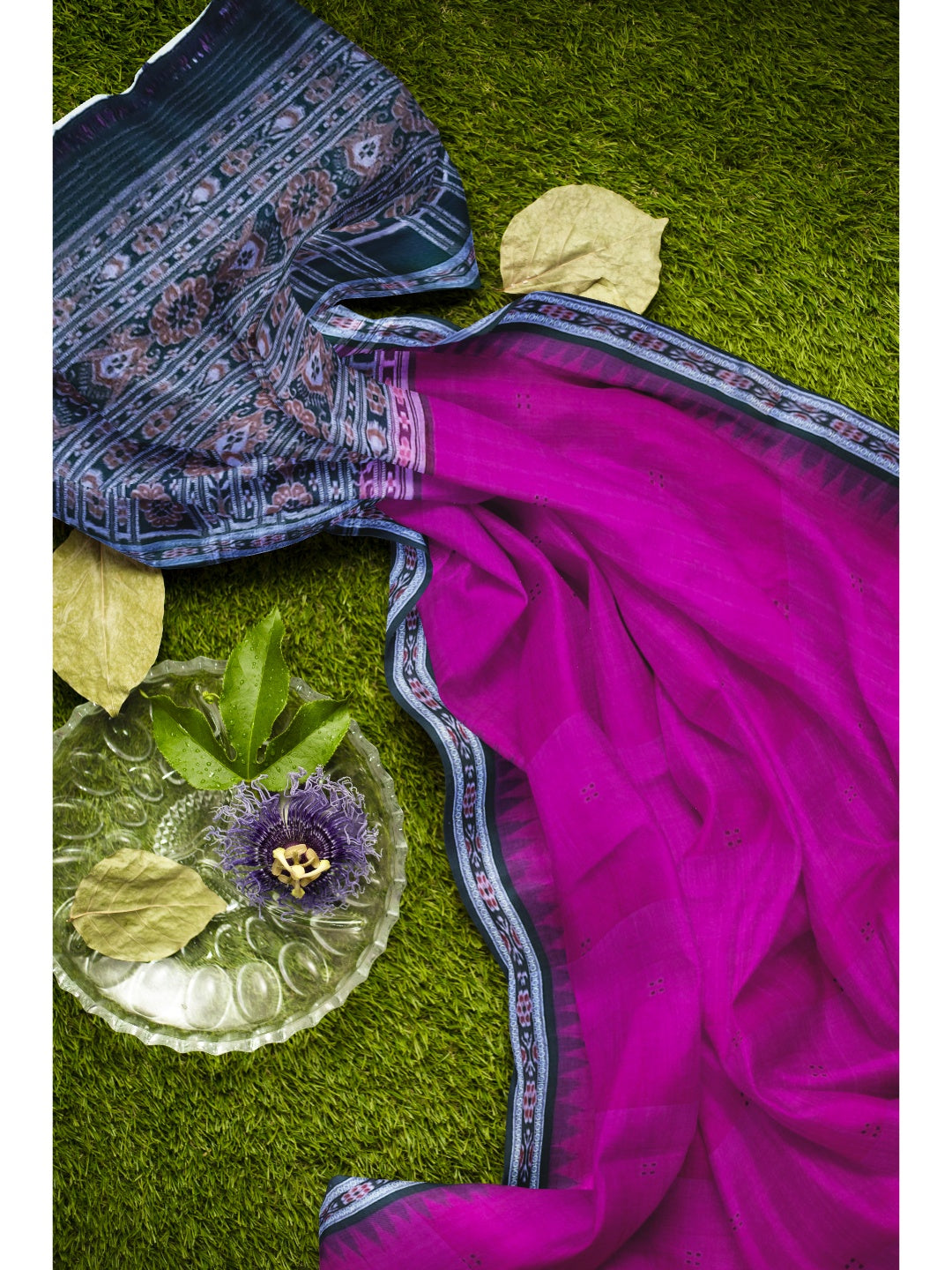Purple Cotton Odisha Ikat saree with cotton ikat blouse piece