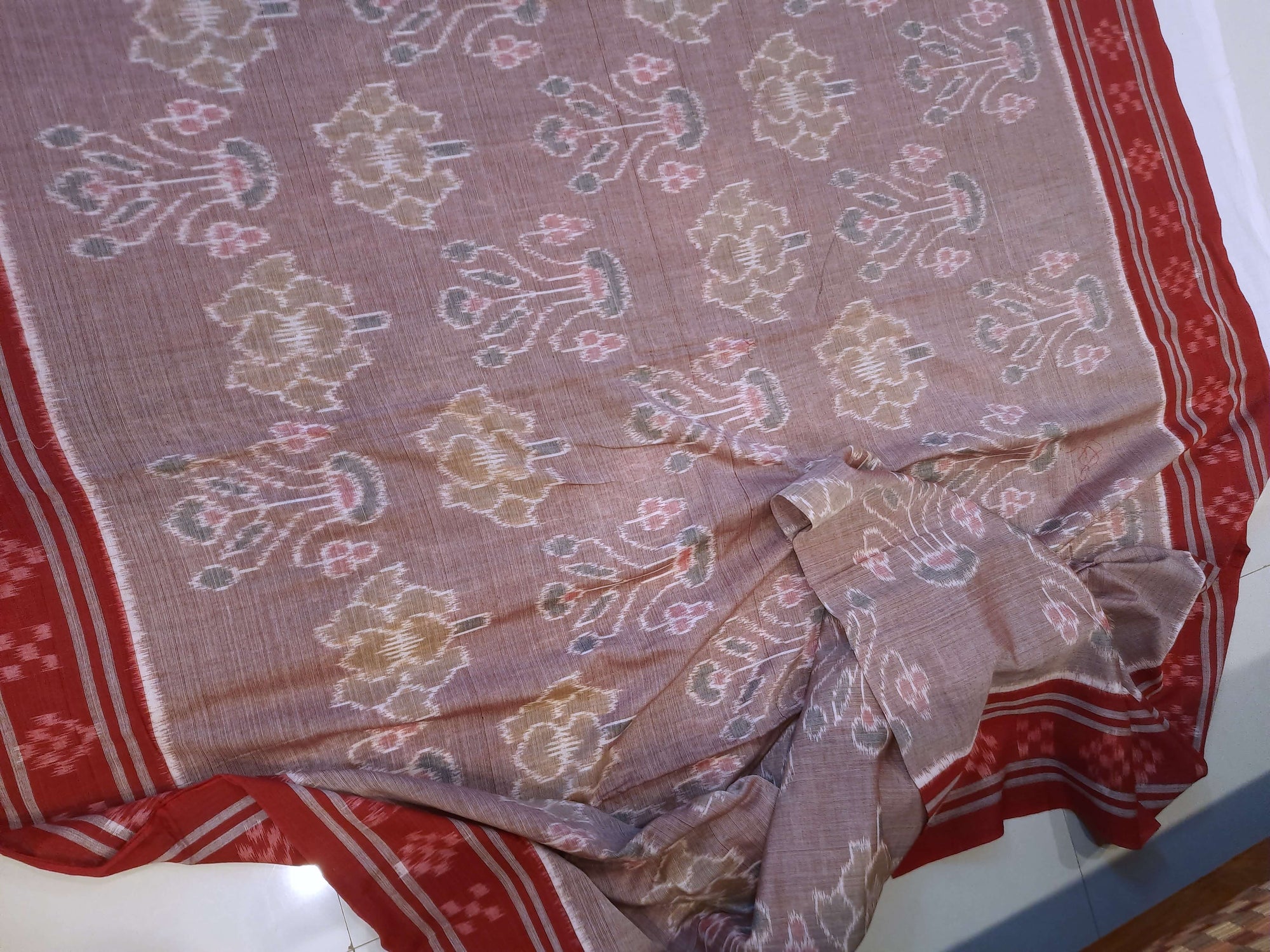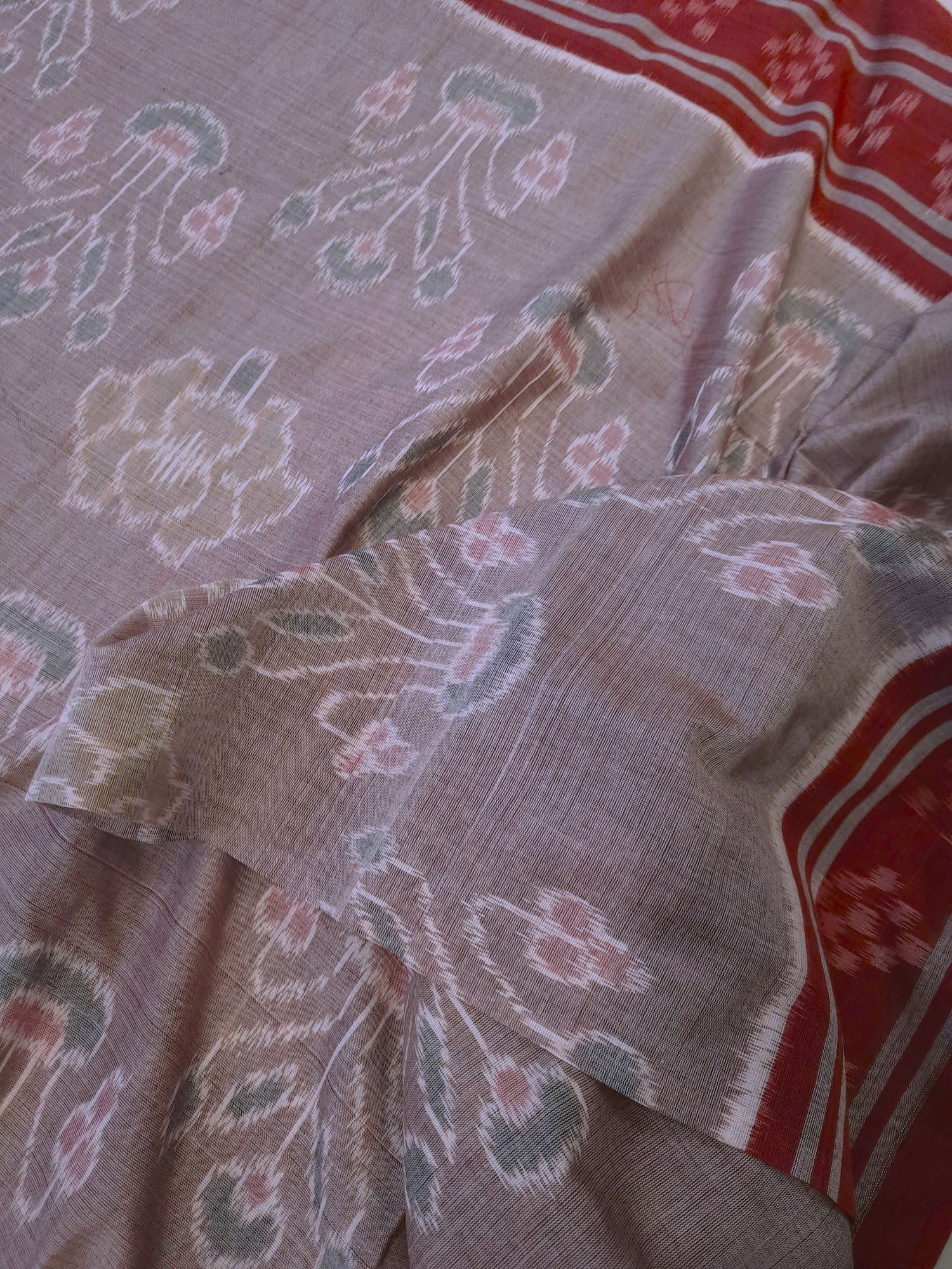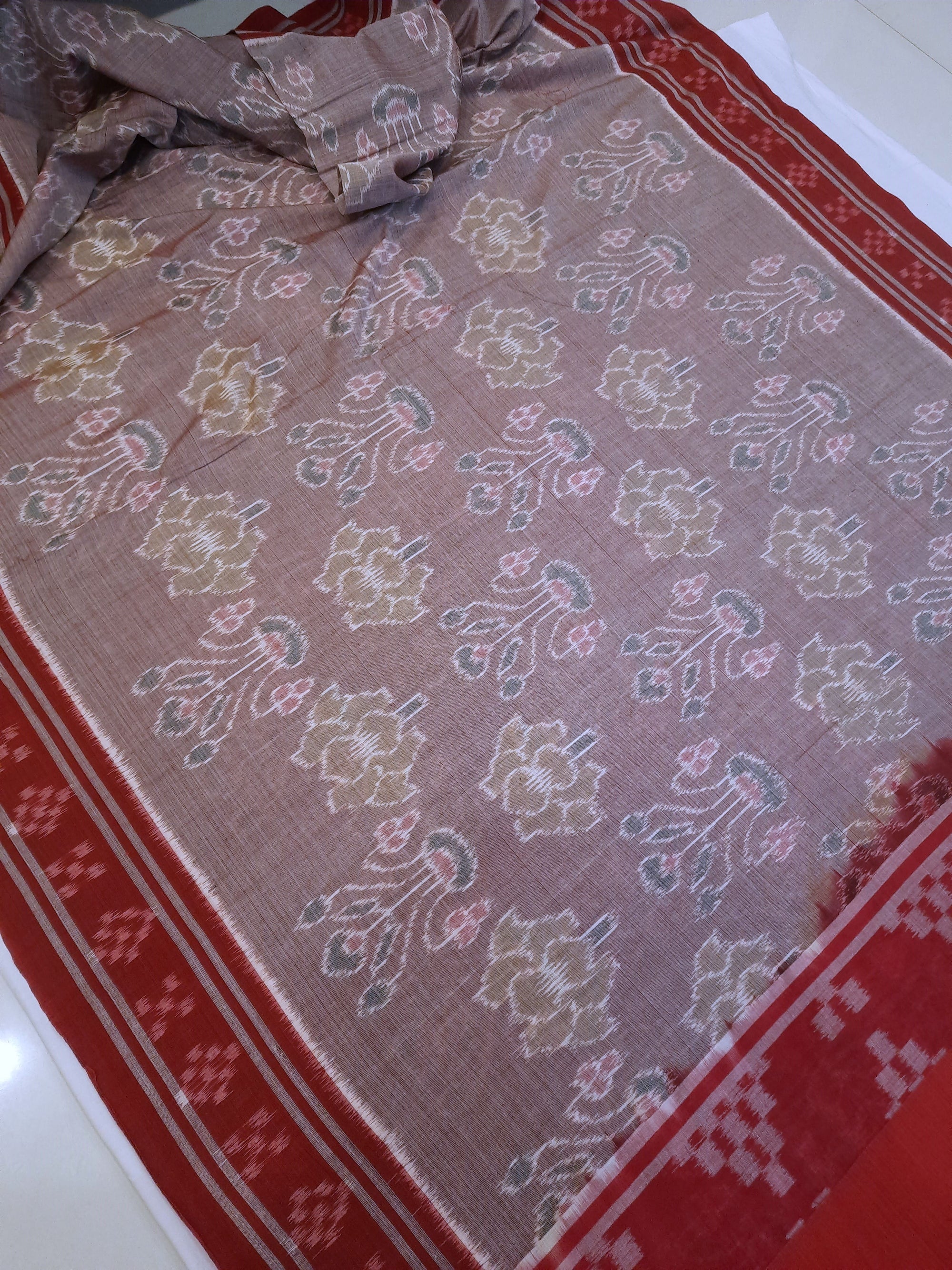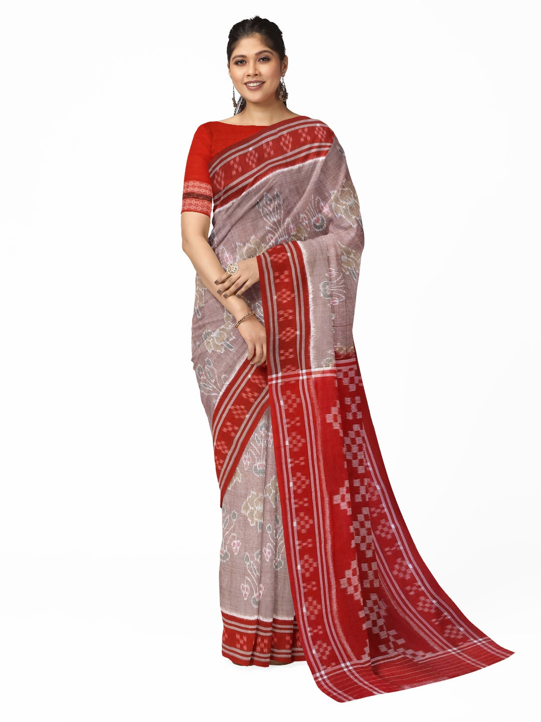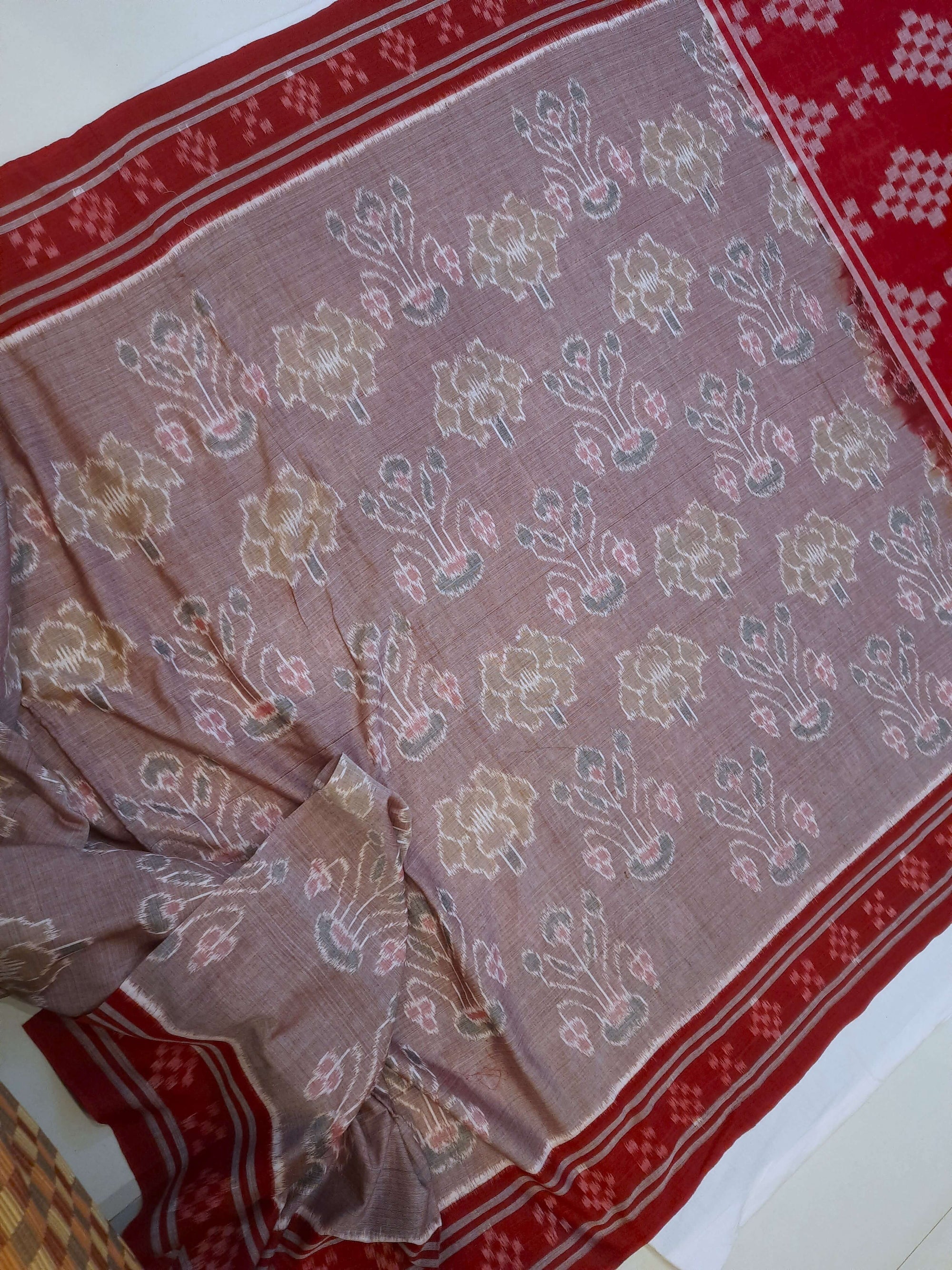 - Rosy Brown Cotton Odisha Ikat Saree with red border