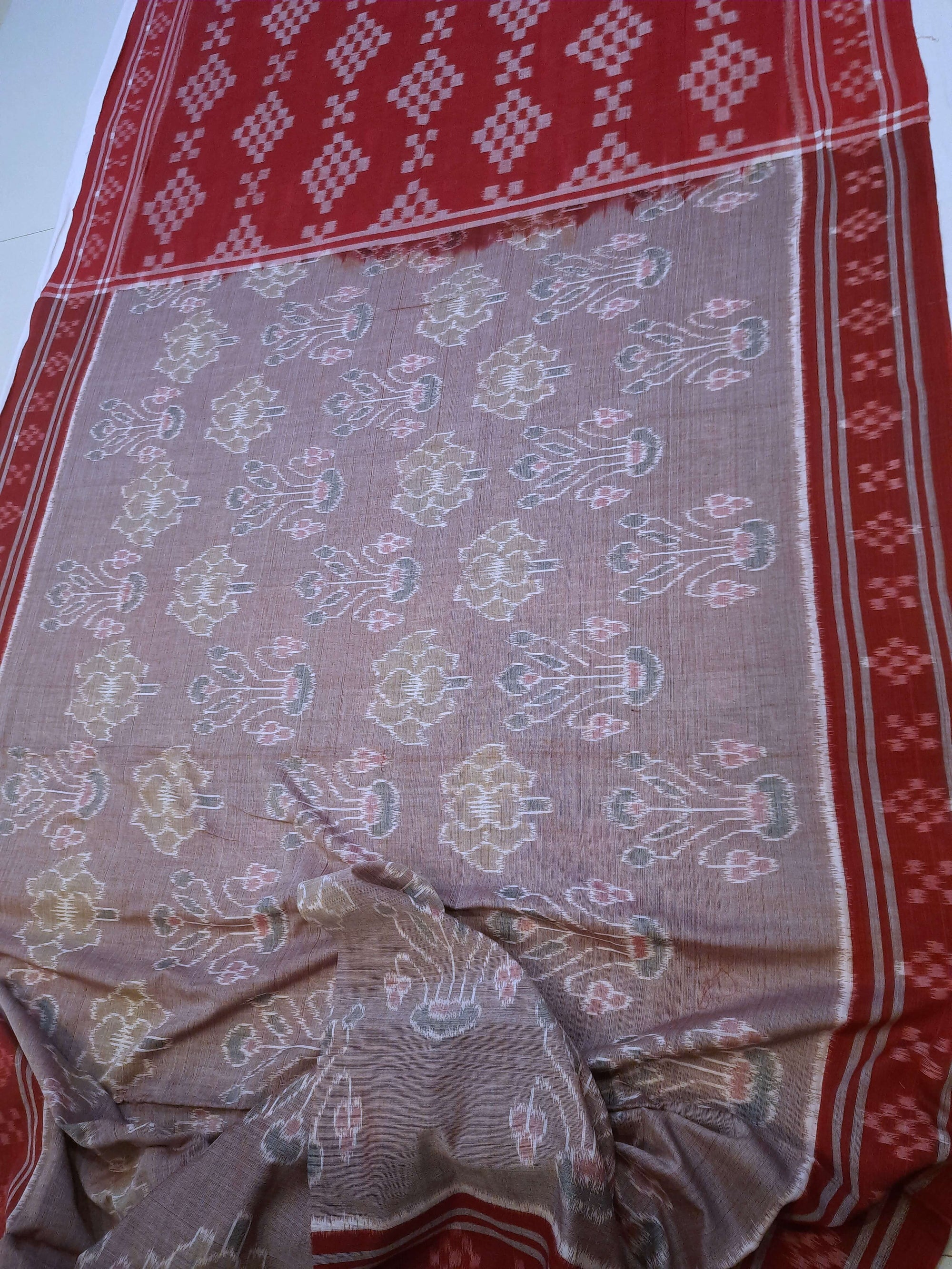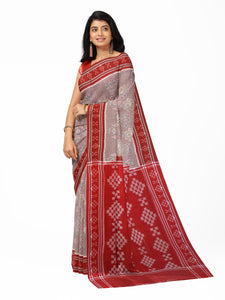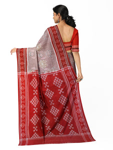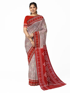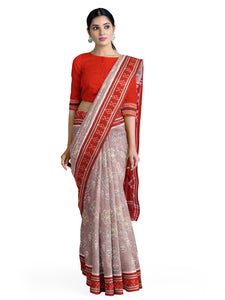 White and Red Odisha Khandua Pata Silk Saree