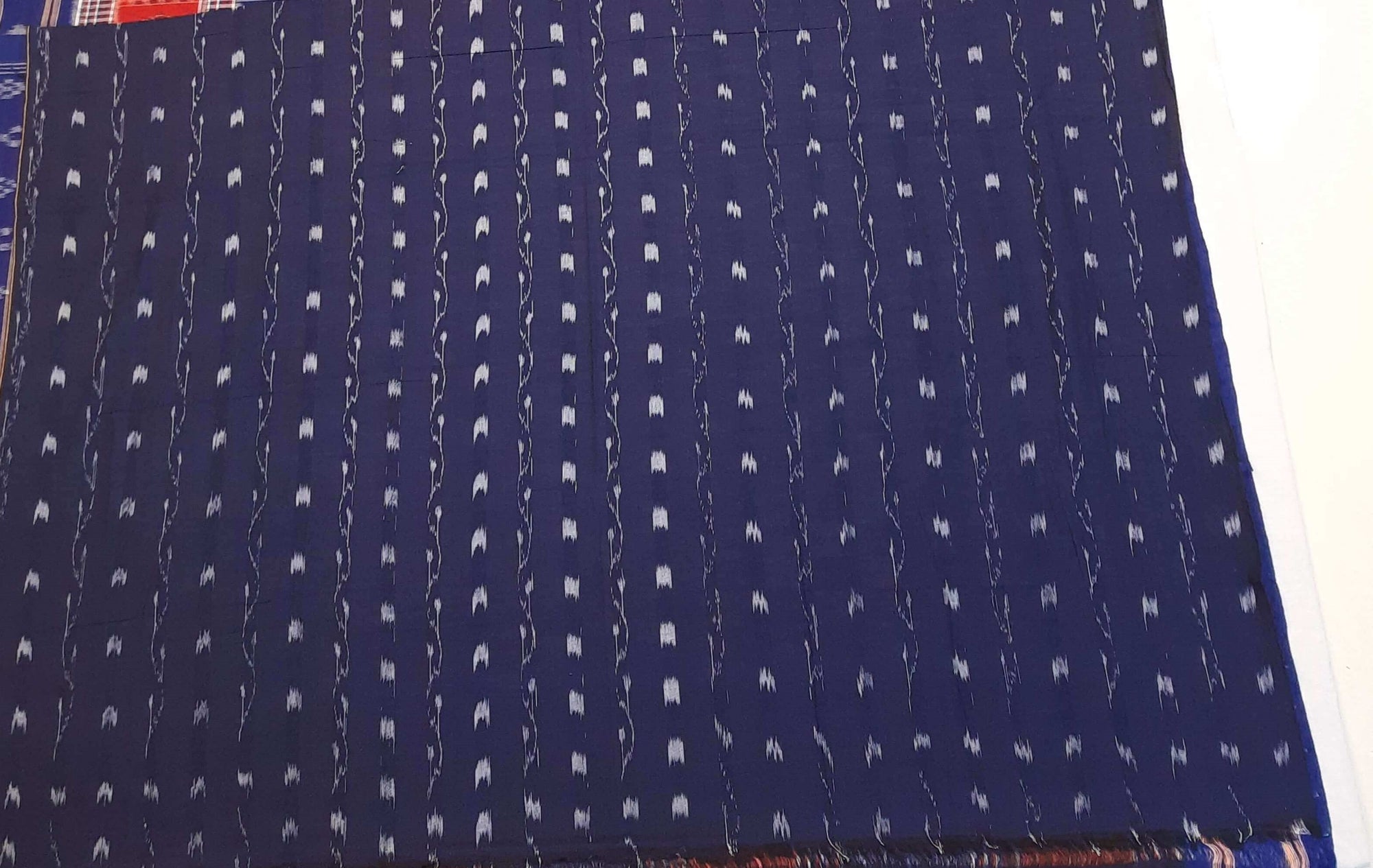 White with Red Cotton Odisha Ikat saree with mix match cotton ikat blouse piece