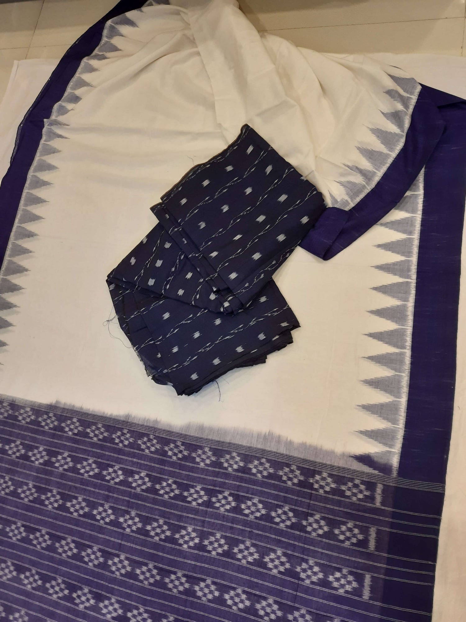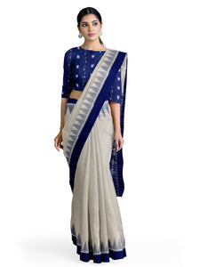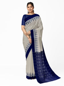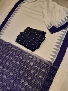 White and Blue Odisha Ikat saree with cotton ikat blouse piece