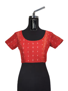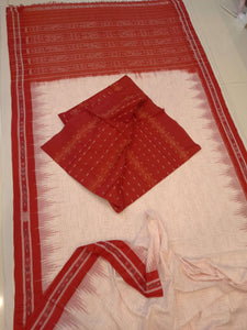 White with Red Cotton Odisha Ikat saree with mix match cotton ikat blouse piece