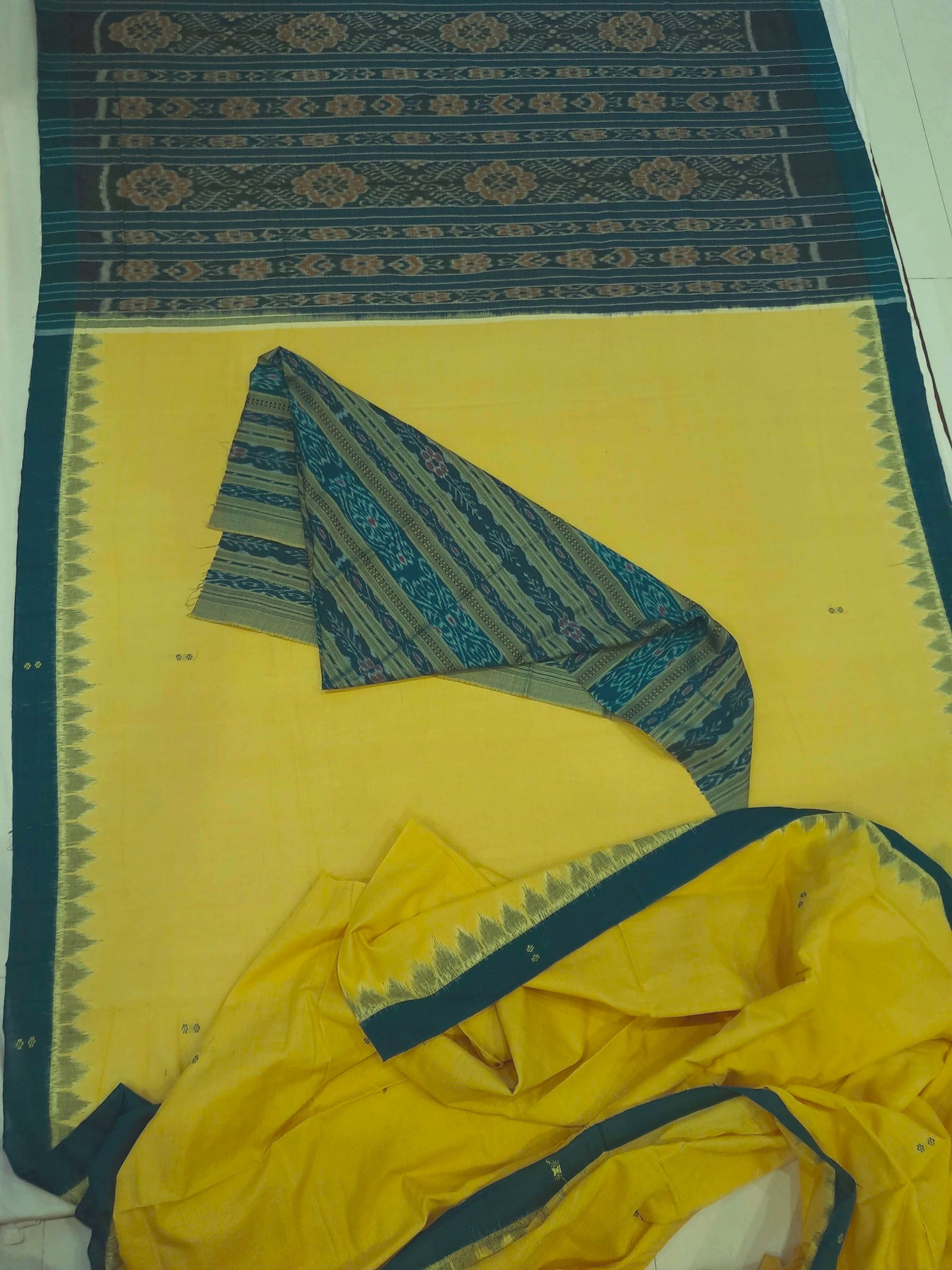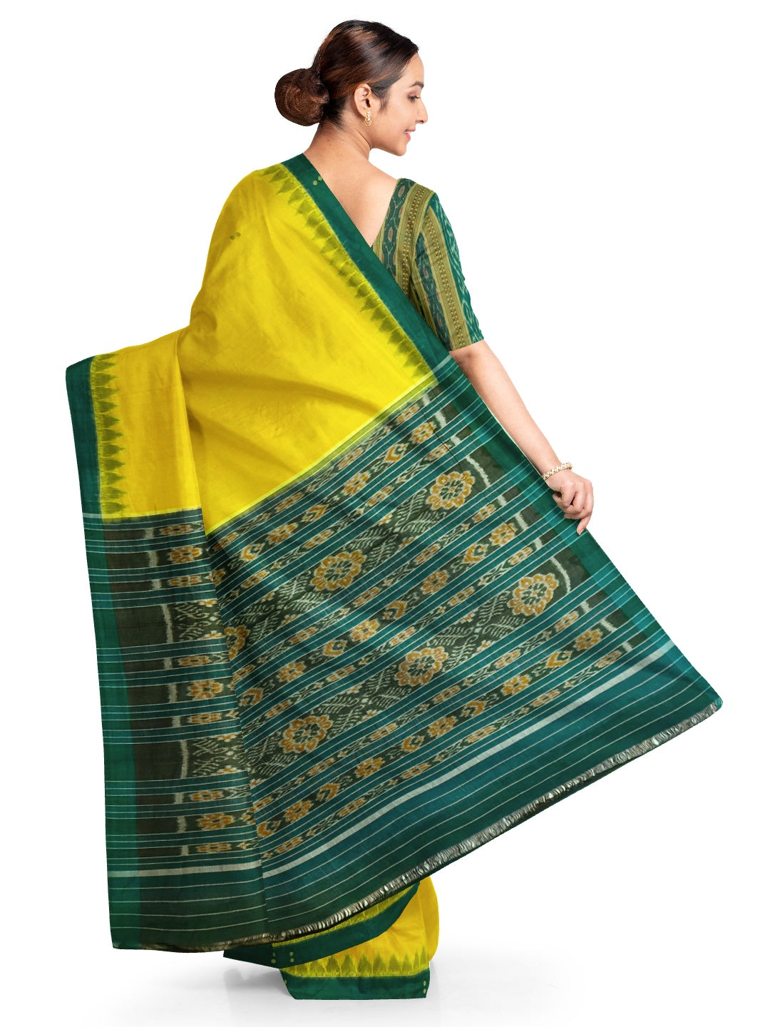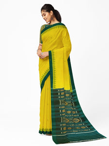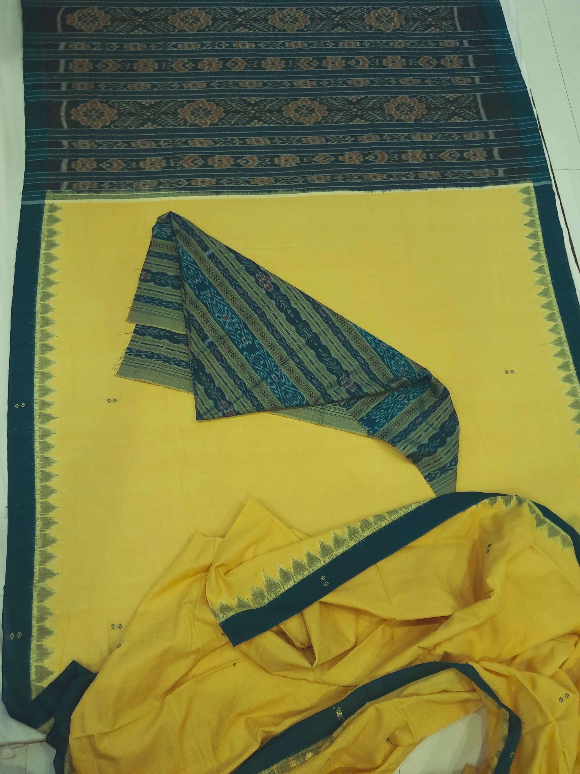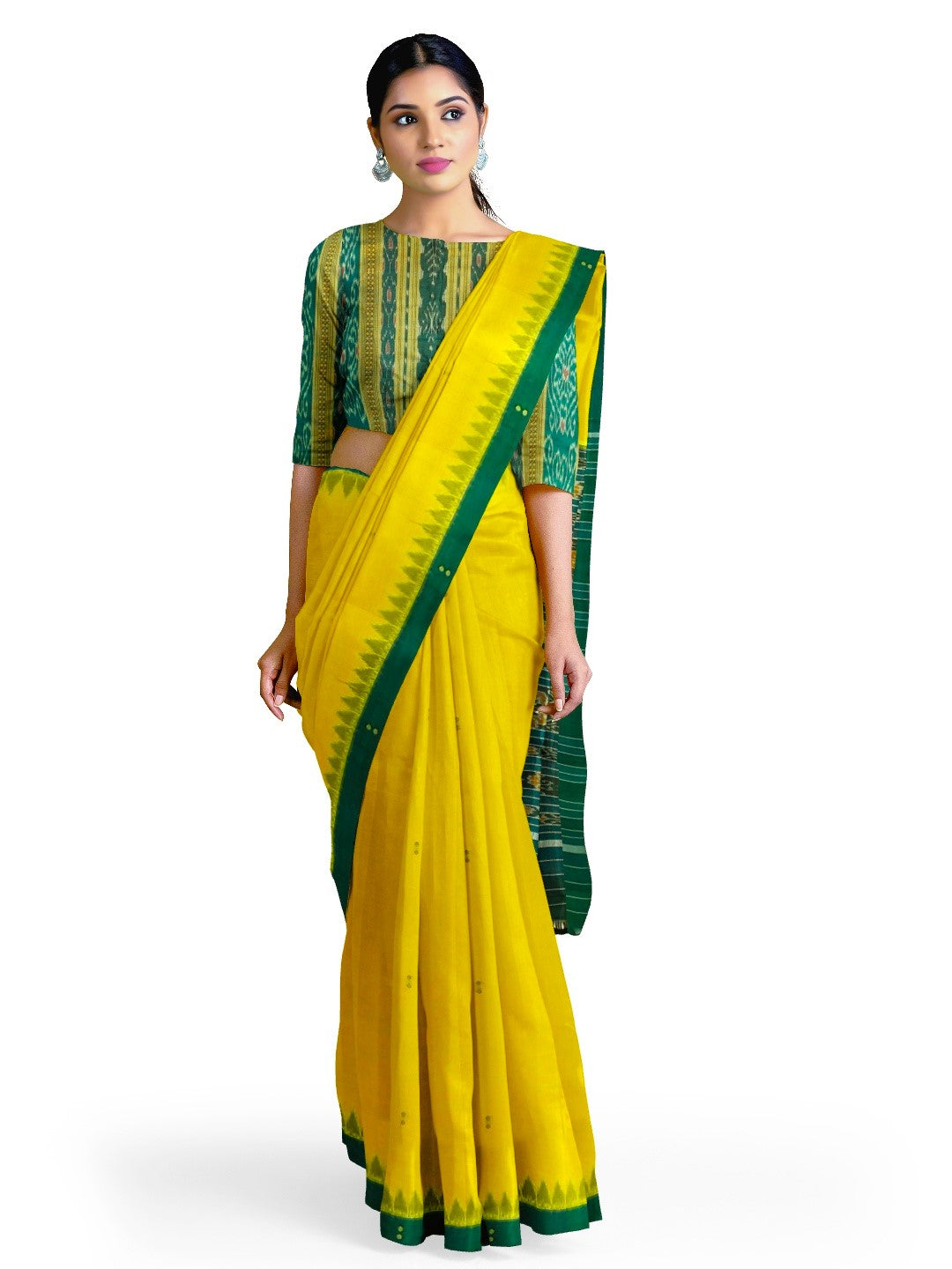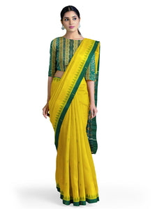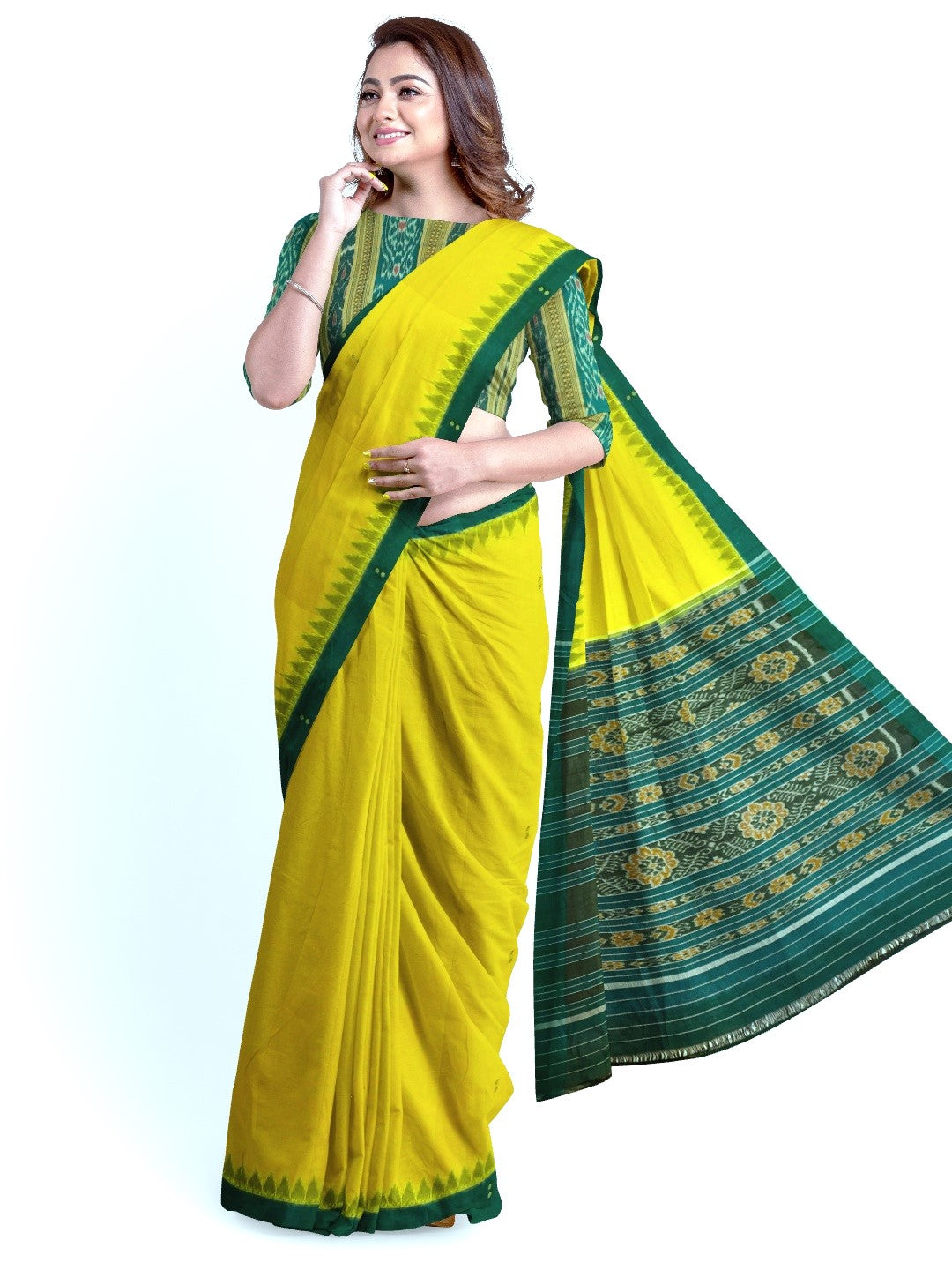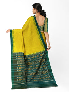 Yellow Green Cotton Odisha Ikat saree with mix match cotton ikat blouse