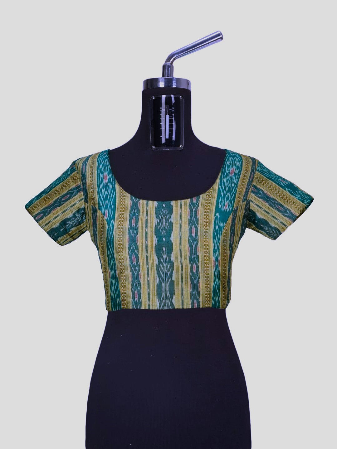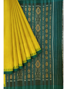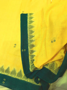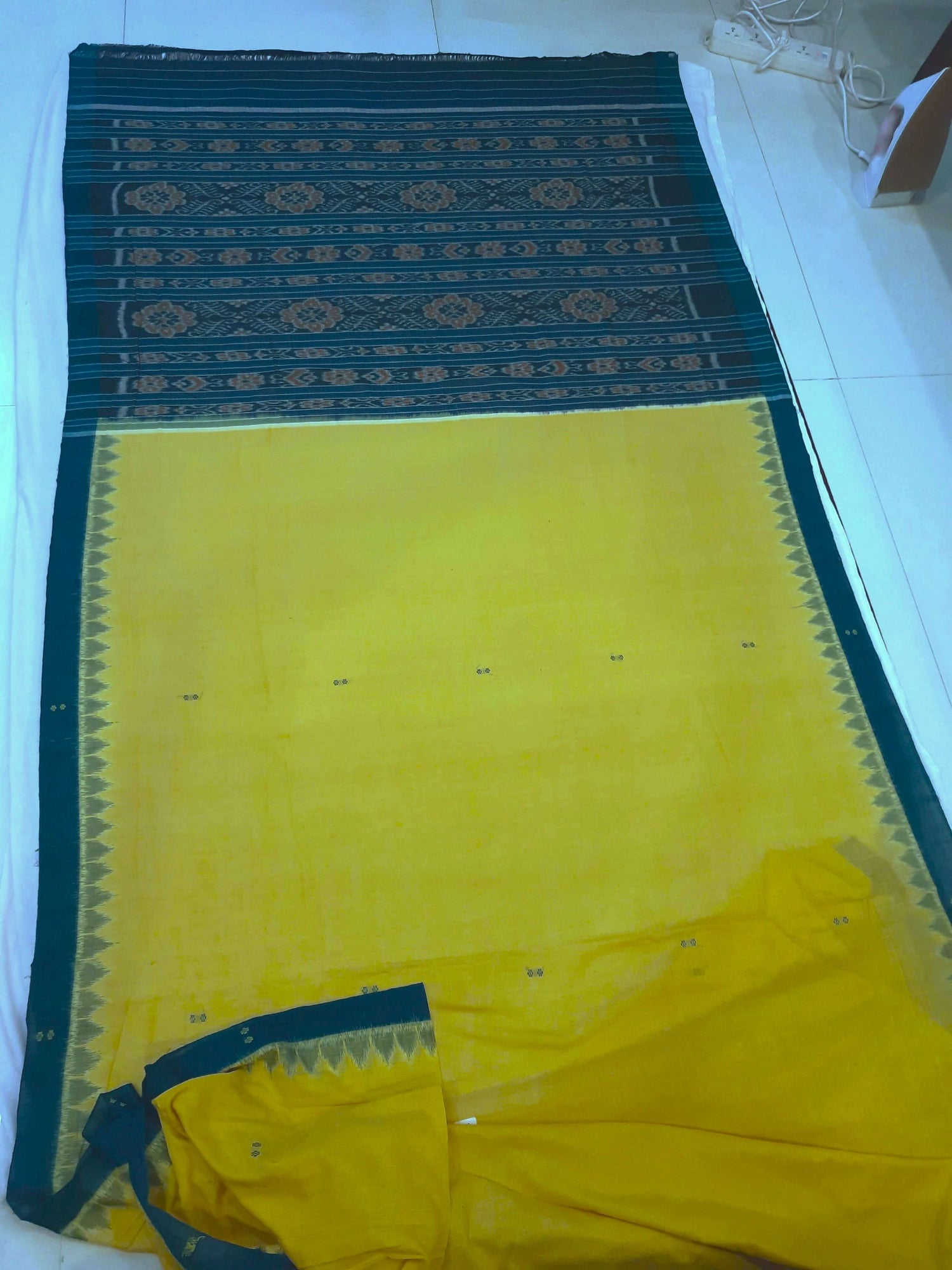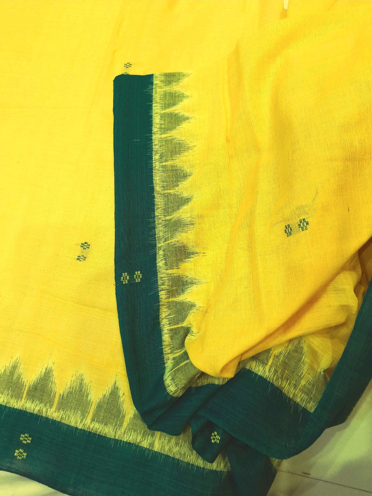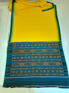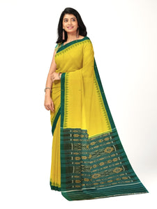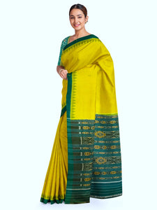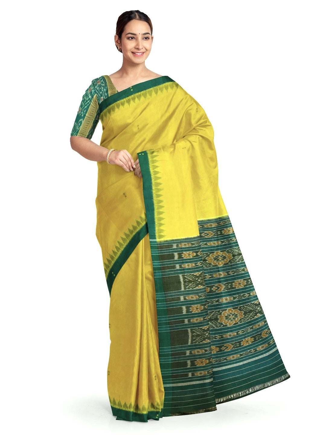 Yellow Green Cotton Odisha Ikat saree with mix match cotton ikat blouse